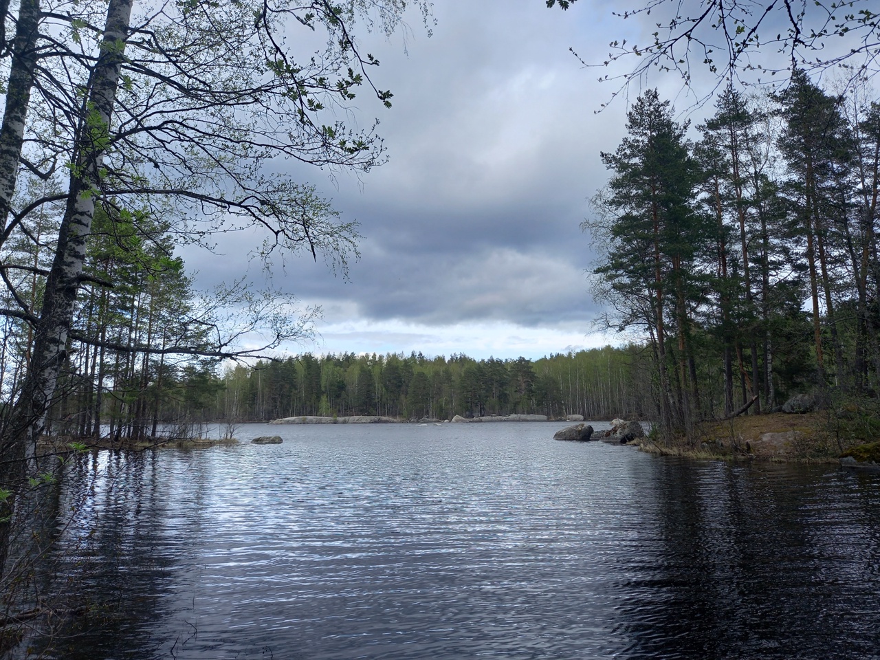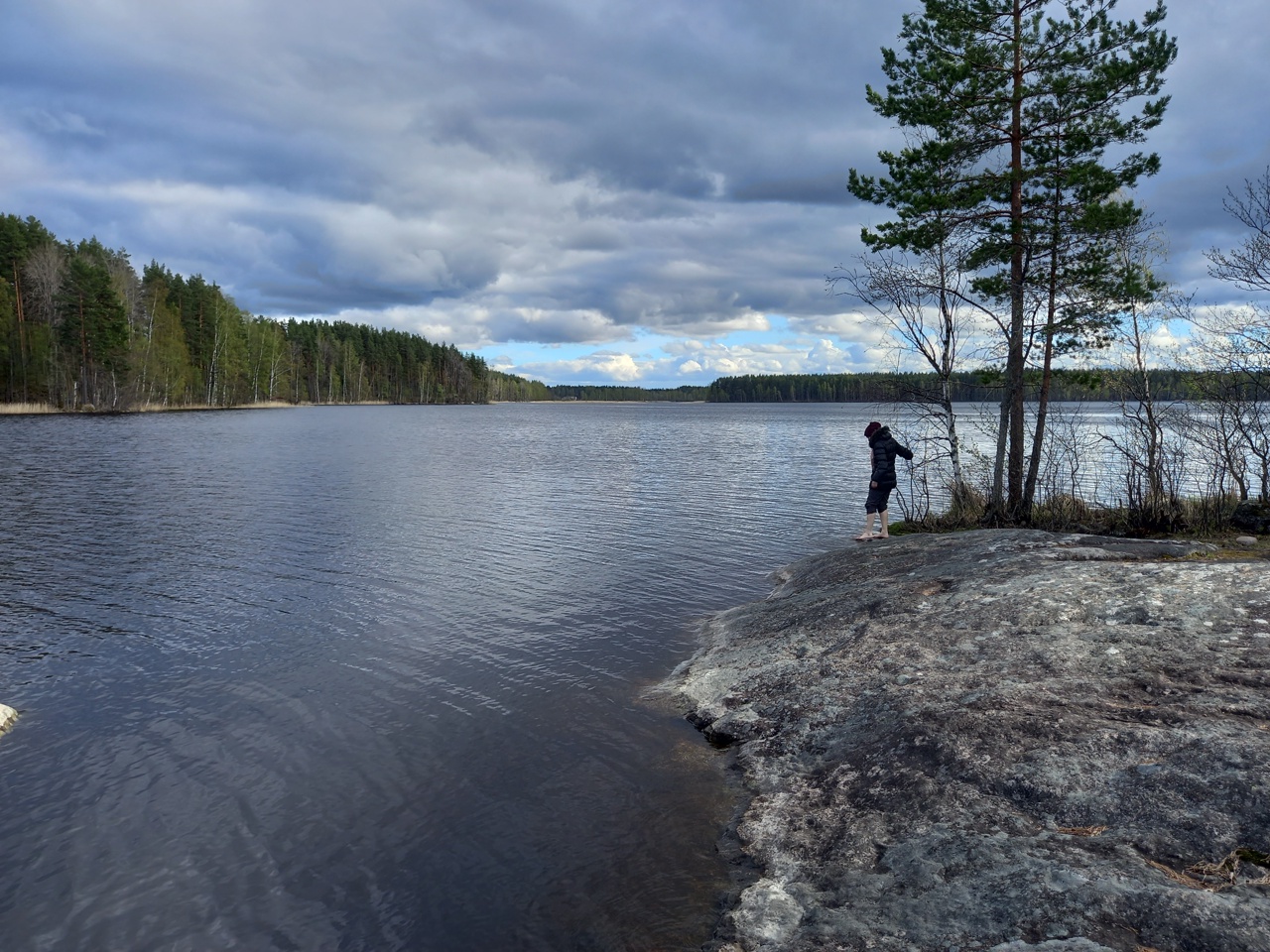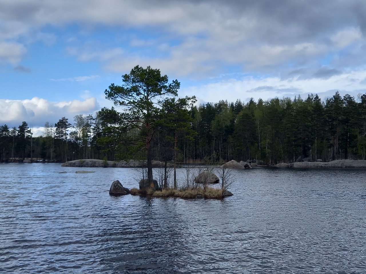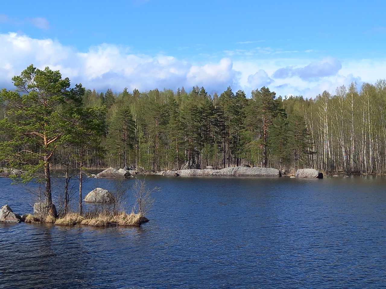 Возвращаемся к окраинам поселка Васильево. И по известной только мне дороге, которой еще нет на картах, идем к берегу Вуоксы, где я знаю очень красивое место. Его надо показать моим спутникам - потому что никто больше не покажет, потому что его - как и дороги - на карте нет. Нашел его когда-то случайно - почему-то зашел сюда изучить берег. Возможно, искал туристическую стоянку для отдыха, а нашел при этом хороший пейзаж. Итак, мы дошли до Вуоксы, а далее по берегу направо.
