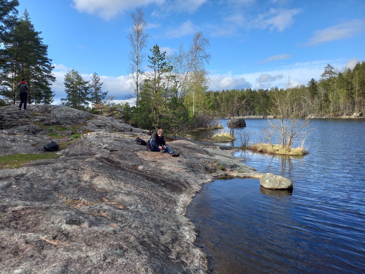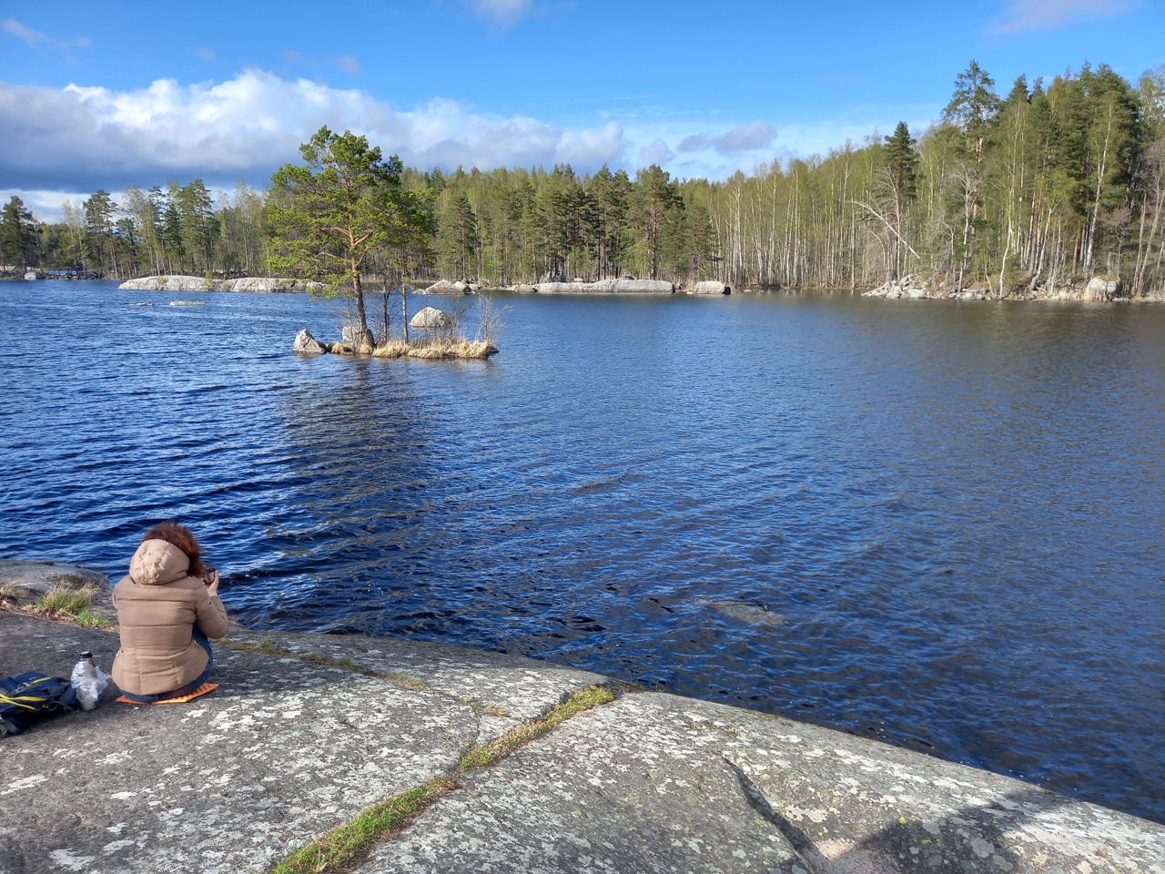 Отдых в лесу. На берегу Вуоксы не дул ветер, хотя на дороге дуло сильно. Отдыхать тут было приятно.