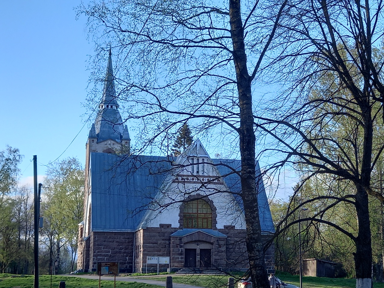 За пару минут до отправления автобуса успели мельком сфотографировать финскую кирху в центре поселка. Сюда мы заглянем в следующий раз, о чем я подробно скоро расскажу.