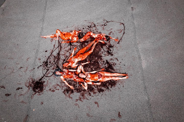 • Обнаженные российские и украинские активистки из инициативы femay.berlin легли на асфальт в форме буквы Z в Берлине. Их тела были измазаны красной краской, символизирующей кровь.