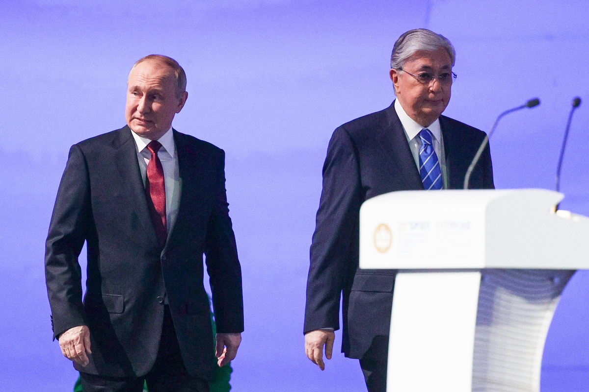 But the most interesting part was when the moderator, Margarita Simonyan (head of state-owned RT and a prominent hawk on Ukraine) began putting questions to Putin and Tokayev. Along with the president of Armenia, Tokayev was one of only two heads of state to travel to the forum. It was painfully clear that Tokayev’s presence was repayment for Putin’s support back in January when troops from the Russian-led Collective Security Treaty Organization (CSTO) helped to re-impose order in Kazakhstan and, at the same time, marginalize Tokayev’s predecessor, Nursultan Nazarbayev.