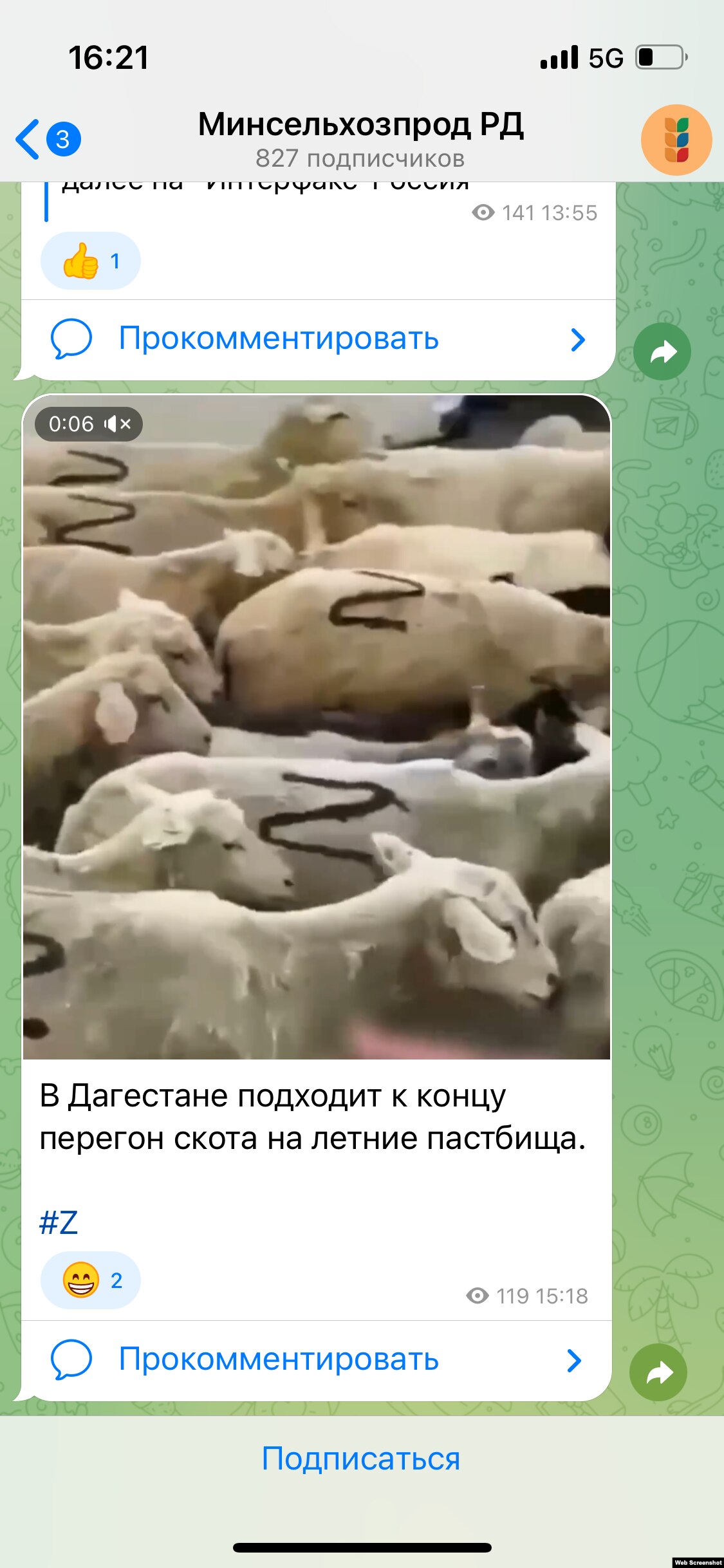 Дагестанское министерство сельского хозяйства и продовольствия опубликовало, а затем удалило видео перегона большой отары овец – на каждом баране была нарисована буква Z.