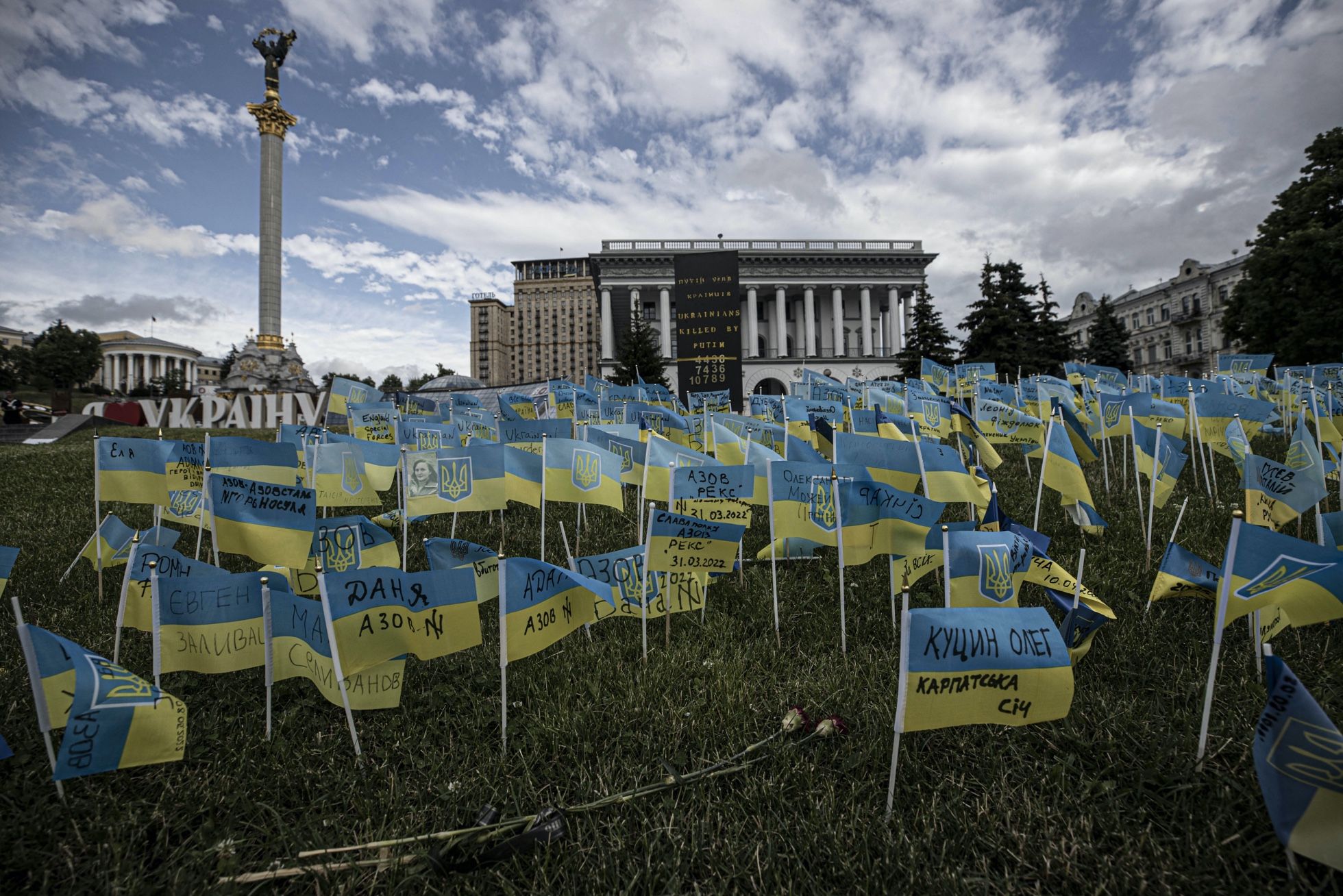 Флаги на киевском Майдане в память о погибших украинских солдатах