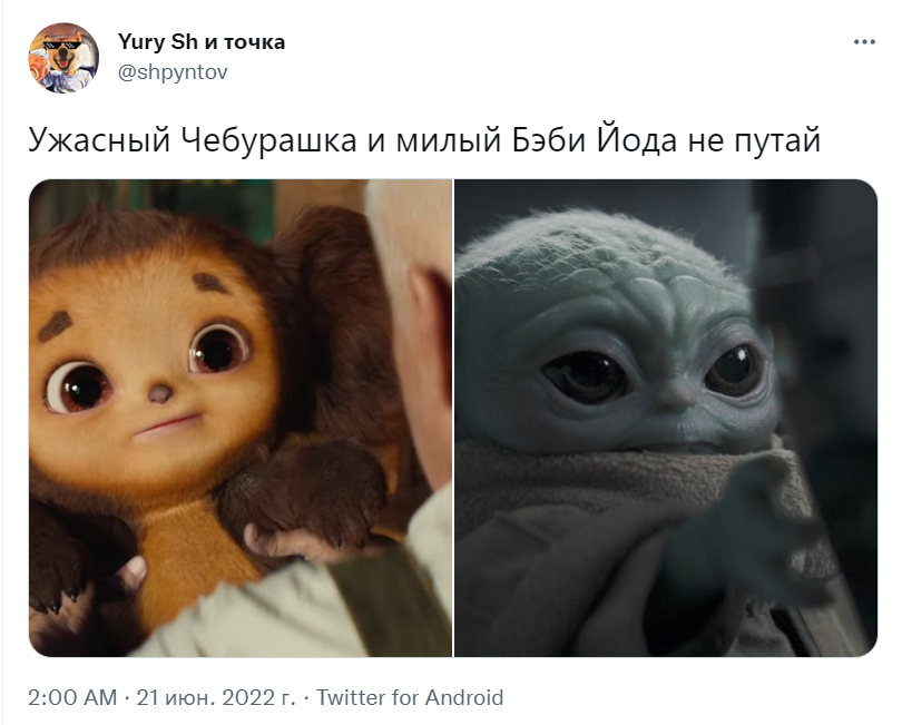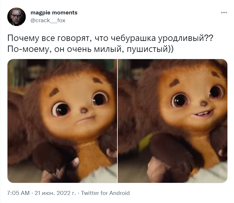 Впрочем, некоторые пользователи называют нового Чебурашку «милым и пушистым». А кто-то говорит, что теперь он может кусаться.