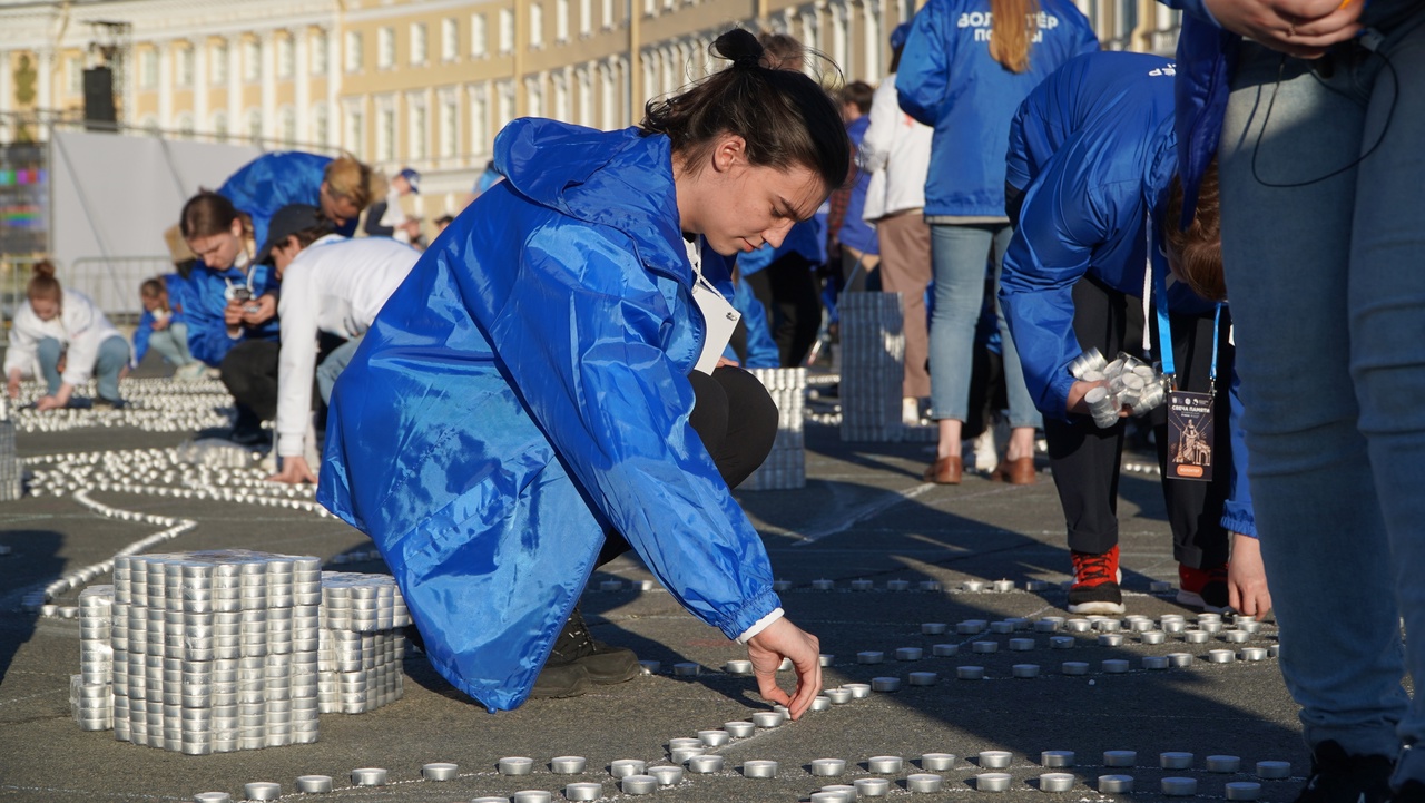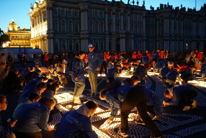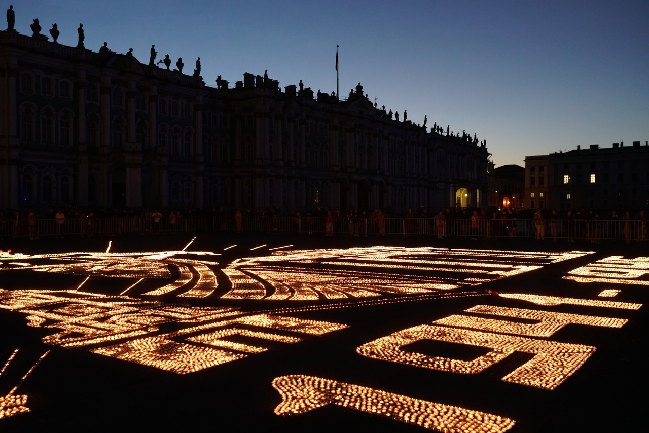 На Дворцовой площади зажгли 50 тысяч свечей в честь Дня памяти и скорби