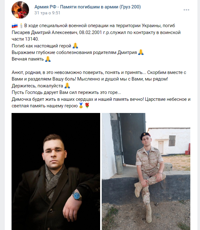 Контрактник Дмитрий Писарев из города Бородино погиб еще 1 марта, а информация об этом появилась только в конце мая.