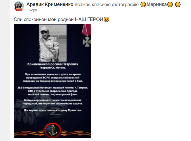 Гранатометчик Ярослав Кримененко был убит еще в апреле, но некрологи в сети начали появляться в мае.
