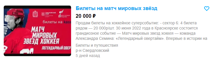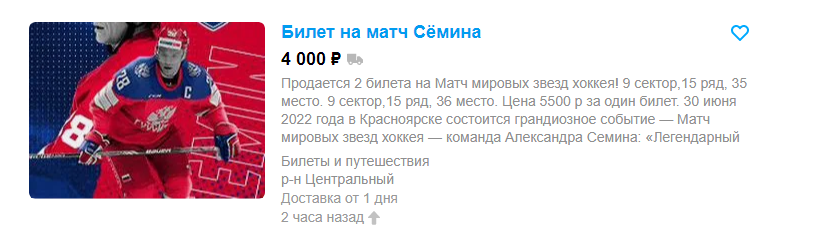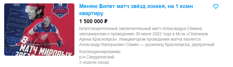 Так, на «Авито» можно найти билеты как за 4 тысячи рублей, так и за 20 тысяч. Нашлось и объявление, в котором предлагается обменять билет на однокомнатную квартиру.