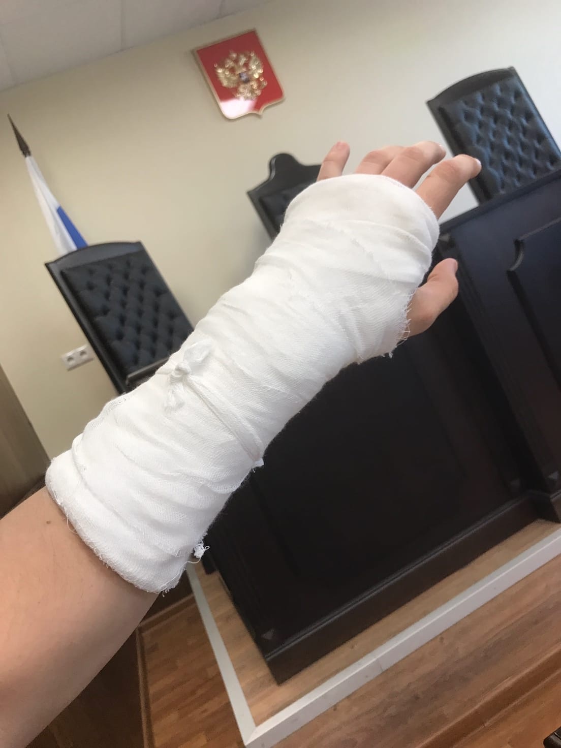 «Меня при задержании пронесли "ласточкой" и тем самым кисть сломали», — рассказал Фролов «Медиазоне». Из отдела полиции его на скорой доставили в травматологию. В указан перелом дистального метаэпифиза левой лучевой кости (под вопросом), а также ушиб, осаднение, гиперемия шеи и поясницы, верхних конечностей, лучезапястных суставов. Музыканту наложили гипс, после чего силовики отвезли его обратно в ОВД по Мещанскому району. Там он провел ночь перед судом.