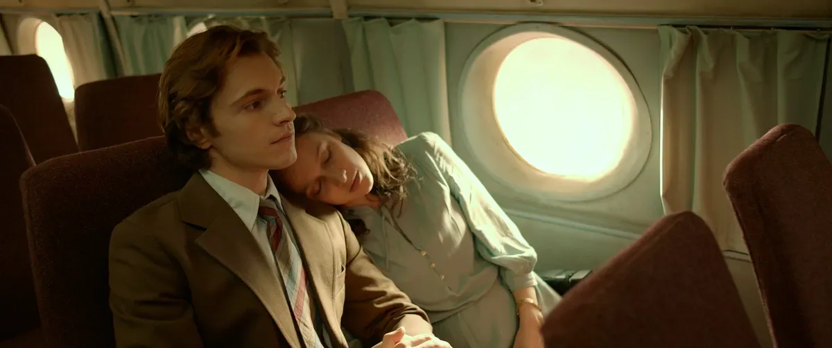 За первые полчаса фильма, а длится он почти два, мы получаем практически все вводные: счастливая пара советских молодоженов вместе с другими образцово показательными героями садится на рейс до родного города после свадебного путешествия, диспетчер забывает передать, что рейс задержался, в итоге происходит столкновение, и самолет падает. Тут же мы видим, что Ларисе удается ухватиться за сиденье, и она чудом приземляется живой.
