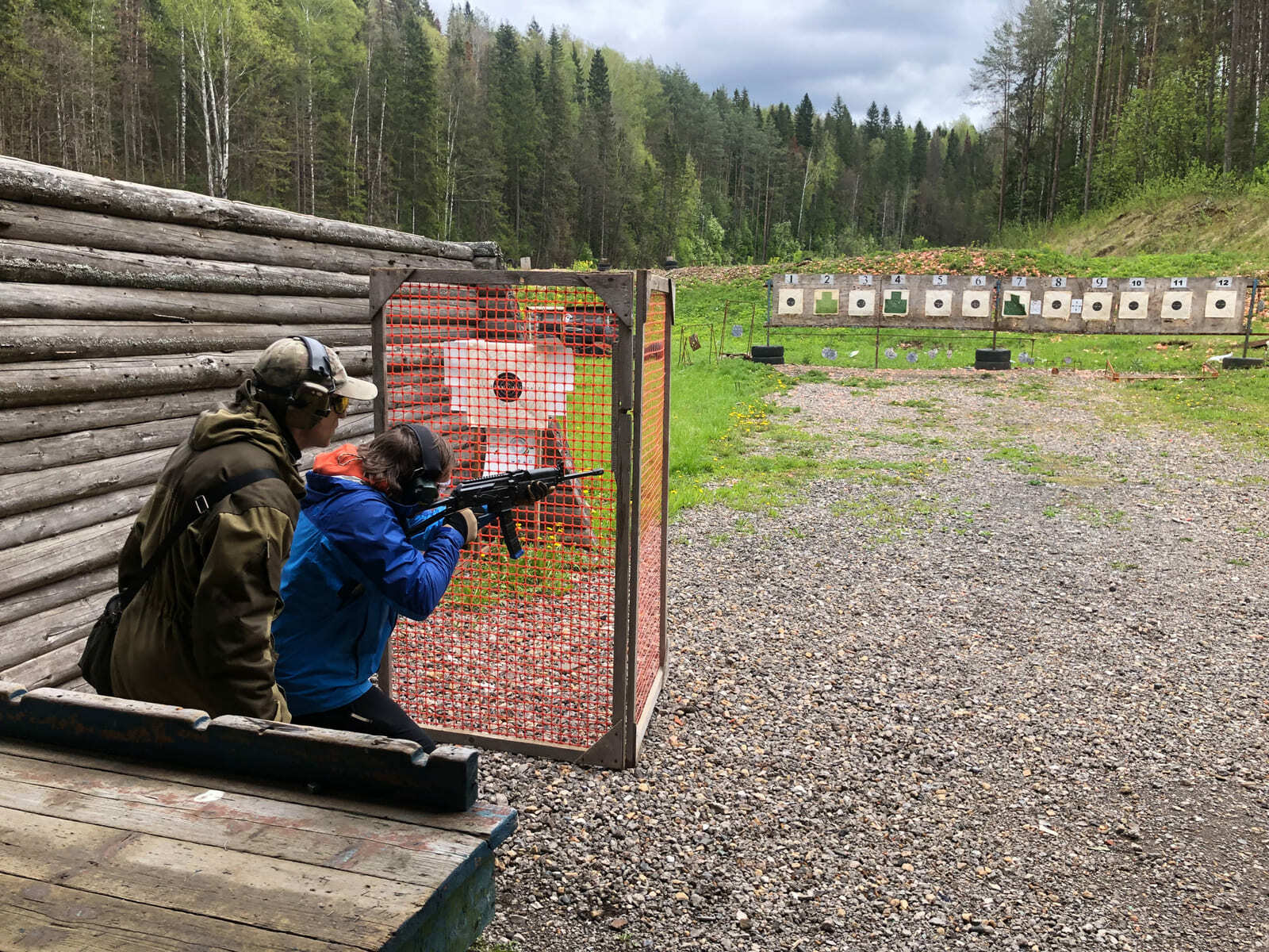 Инструктор получил карабин, патроны, мы надели очки и наушники. У учеников — Юрия и Дмитрия — личные наушники, с активным шумоподавлением, такие стоят около 20 тысяч рублей. Дмитрий потом признается, что на экипировку, вместе с оружием, потратил примерно 150−200 тысяч рублей.