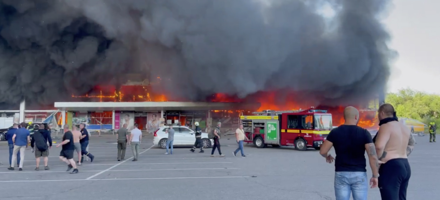 — В украинском городе Кременчуг в результате удара российской армии в понедельник загорелся торговый центр, сообщил Владимир Зеленский. По его словам, в ТЦ находилось больше тысячи гражданских, и «количество жертв невозможно даже вообразить». Пока известно о десяти погибших, более 40 человек ранены — такие данные привел глава Полтавской областной администрации. Очевидцы сообщают, что внутри горящего ТЦ могут оставаться люди. Минобороны России на момент публикации не комментировало ситуацию. Первый зампостпреда России при ООН предположил, что пожар в ТЦ — это провокация, потому что «слишком много бросающихся в глаза нестыковок».