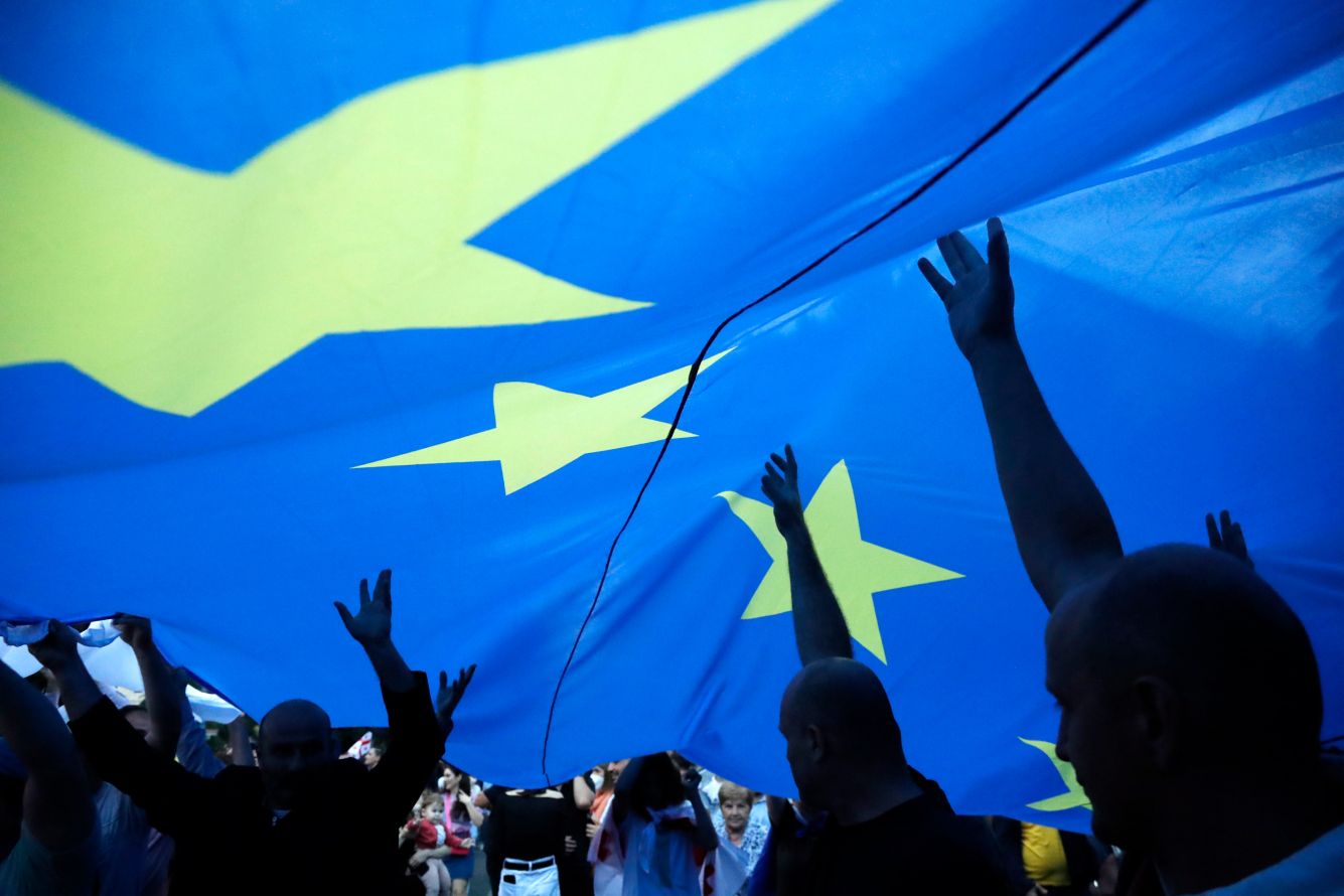 В середине июня Еврокомиссия рекомендовала не давать Грузии статус страны — кандидата в ЕС, однако заявила, что у той есть «европейская перспектива». Теперь, чтобы получить возможность вступить в ЕС, Грузии нужно будет выполнить условия, которые, по оценке Евросоюза, должны укрепить ее демократию. Вслед за этим грузинское движение «Сирцхвилиа» (в переводе на русский — «Позор») провело в центре Тбилиси многотысячную акцию под названием «Домой, в Европу». Еще одна — такая же многочисленная — прошла после отказа Европарламента, поддержавшего решение Еврокомиссии. На ней протестующие потребовали отставки грузинского правительства — и выдвинули ему ультиматум. «Медуза» рассказывает, как жители Грузии пытаются отстоять свое право войти в Евросоюз.