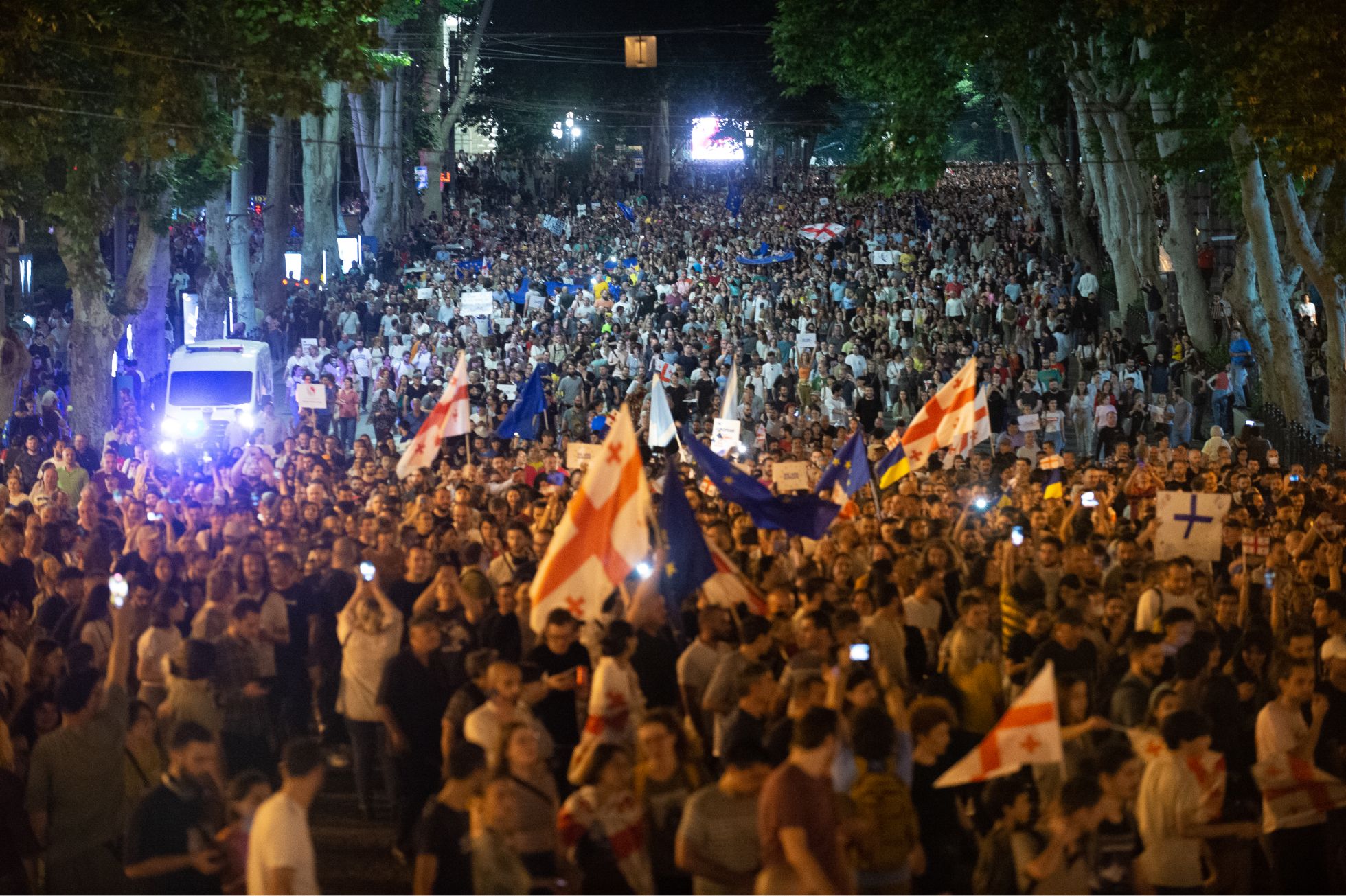 Гимн Евросоюза сменился гимном Украины, а затем гимном Грузии. На огромном экране посреди площади чередовались флаги ЕС, Грузии, Украины и Молдовы.