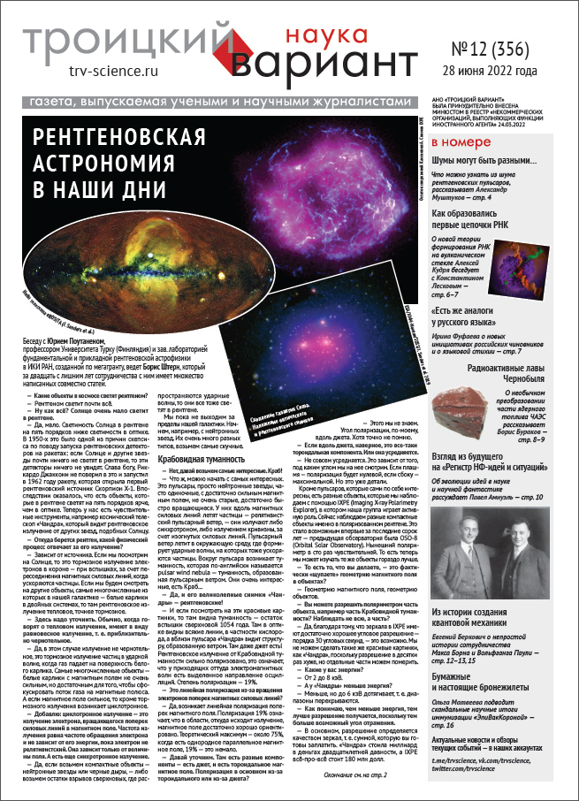 Беседу с Юрием Поутаненом, профессором Университета Турку (Финляндия) и зав. лабораторией фундаментальной и прикладной рентгеновской астрофизики в ИКИ РАН, ведет Борис Штерн — стр. 1–2