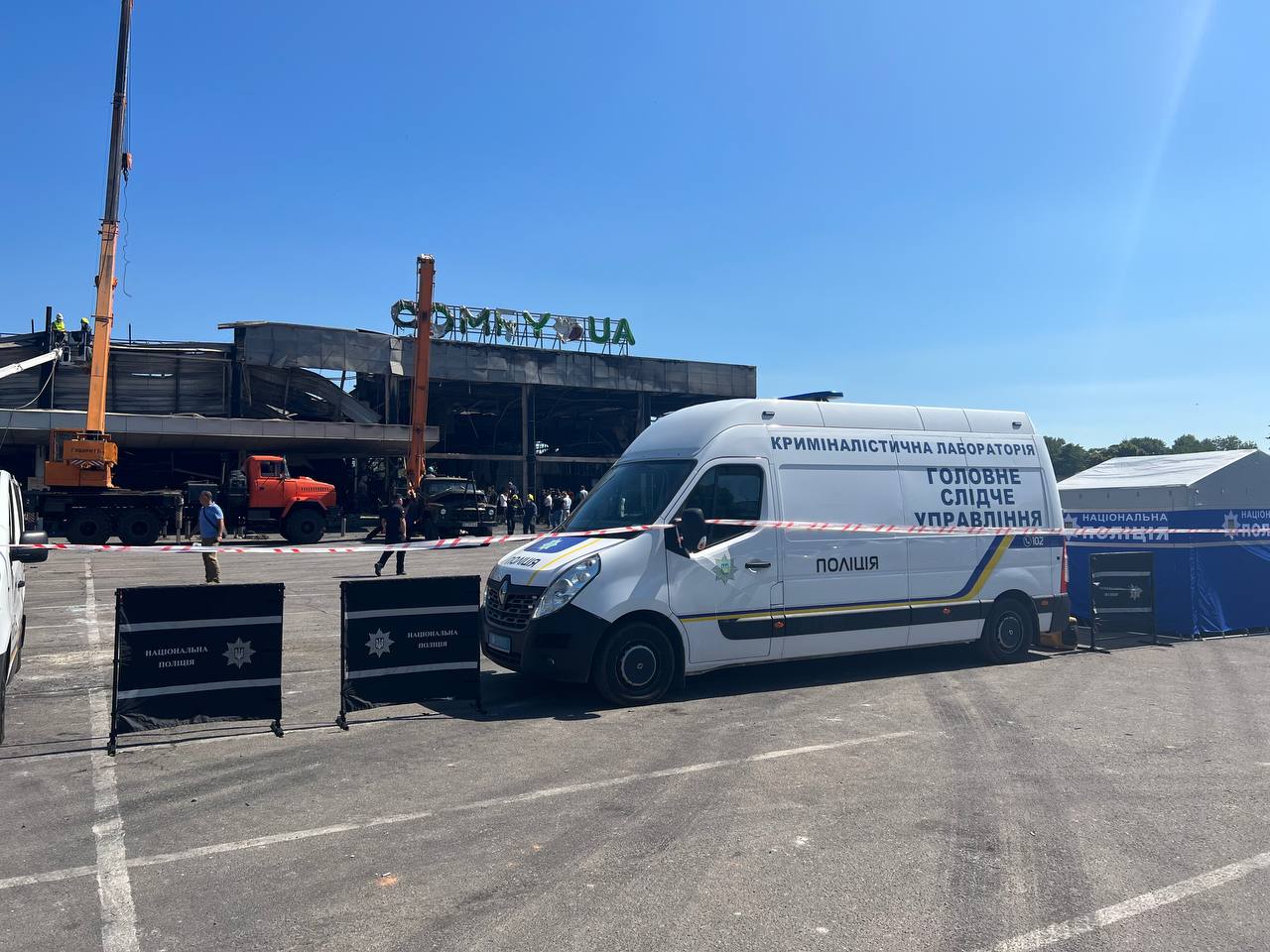 Улица Халаменюка, где располагается «Амстор», перекрыта, заехать может только спецтранспорт. На парковке перед зданием ТЦ сотни пожарных, полицейских и нацгвардейцев. Через дорогу, в тени жилых домов, одинокие ожидающие люди. Они стоят по одному или по двое. Кто-то молча плачет. Кто-то, если подойти и о чем-то спросить, начинает плакать во время разговора. Эти люди ждут, найдут ли под завалами их близких.