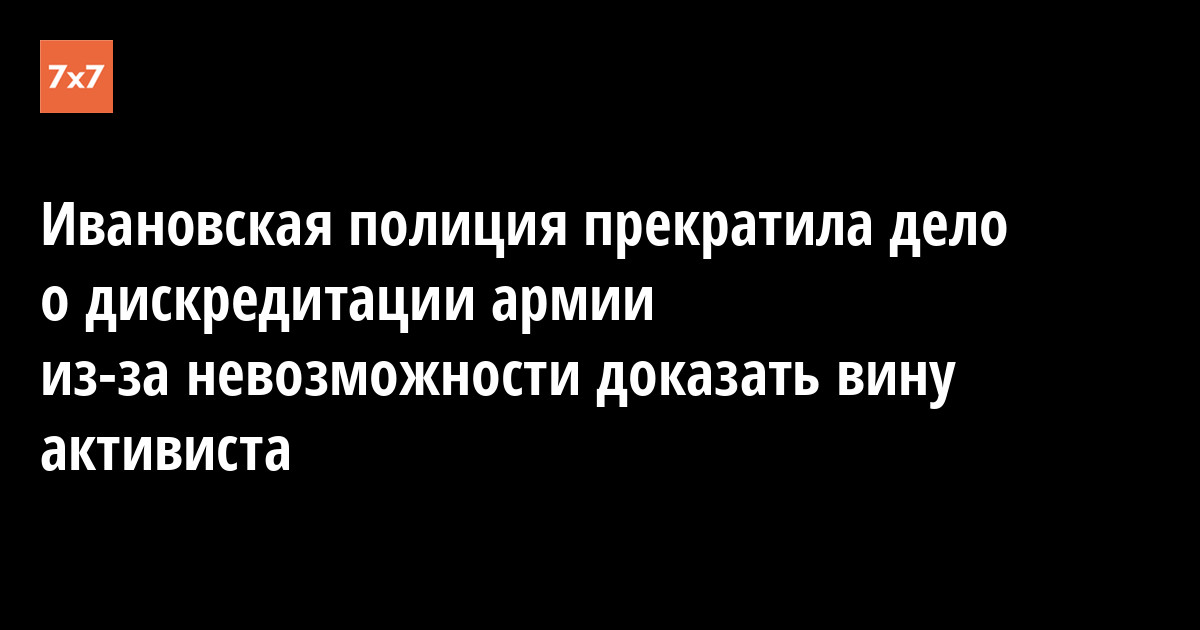 В Иванове полиция 28 июня прекратила дело о дискредитации армии (статья 20.3.3 КоАП РФ) после трехкратного возвращения протокола судьями. Основанием для закрытия дела стало отсутствие состава правонарушения и недоказанность вины местного жителя Леонида Горюнова. В марте 2022 года он опубликовал на странице в «Одноклассниках» пост со ссылкой на политика Алексея Навального, где говорилось о проведении ежедневных пикетов против [Роскомнадзор].