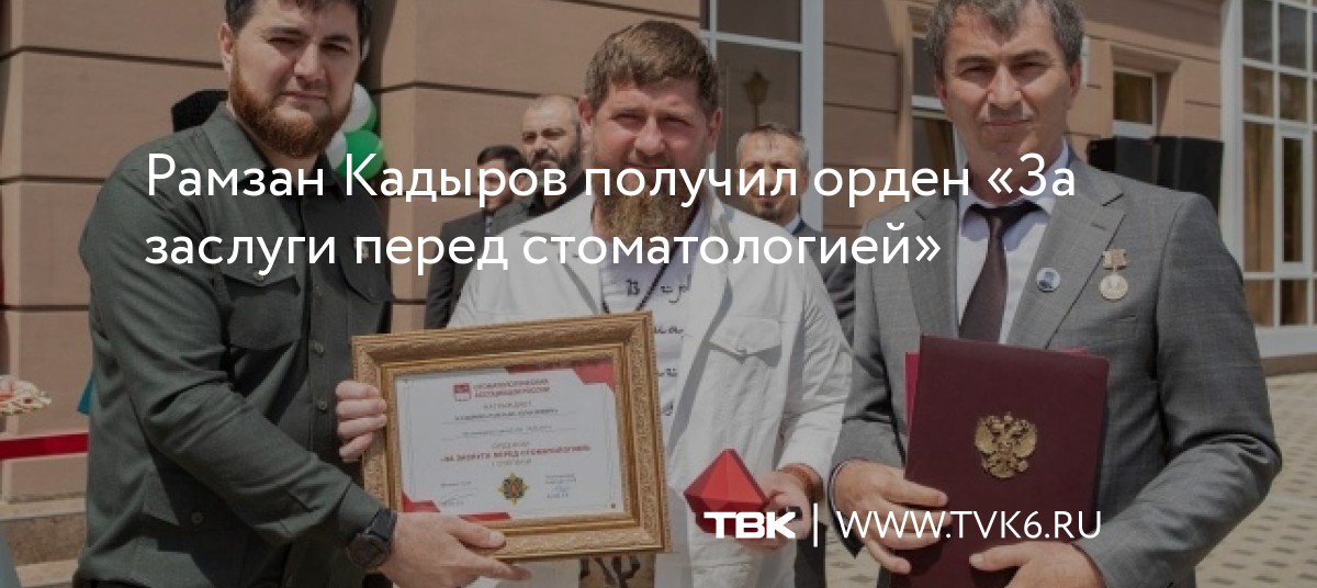 Награду вручила Стоматологическая ассоциация России за вклад в развитие стоматологической службы республики. Об этом рассказал сам Кадыров на своей странице во «ВКонтакте».