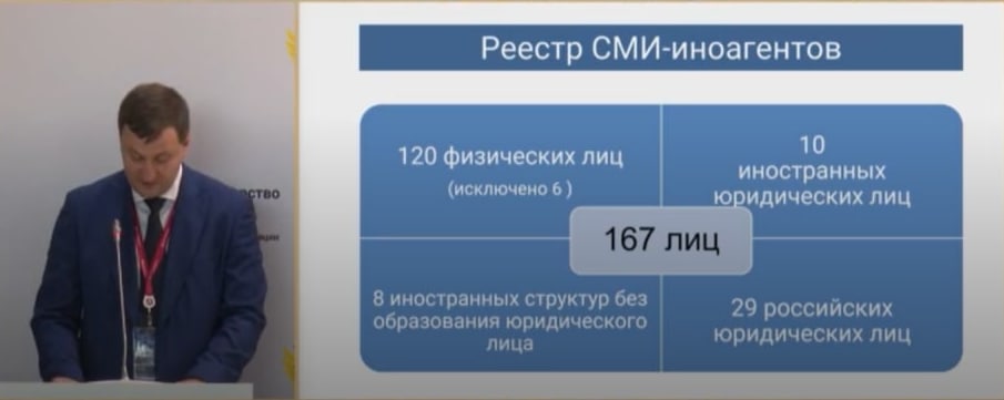 В среду, 29 июня, на Петербургском международном юридическом форуме выступил представитель Минюста Роман Цыганов. Он объяснил, кого ведомство считает «иностранными агентами». Так, по его словам, «иноагенты» — это НКО, которые не признают Крым, исследуют проблемы безнаказанности преступлений и выступают в поддержку «Мемориала».