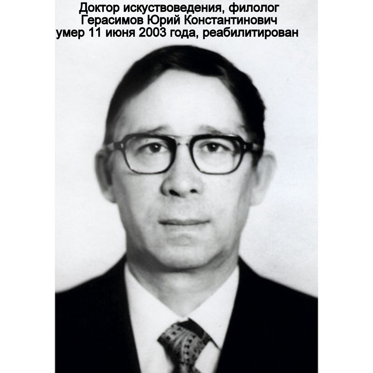 Советский литературовед Юрий Герасимов, окончив в 1941 году с отличием среднюю школу, ушел в ополчение и только после войны сумел продолжить учебу на славянском отделении филологического факультета ЛГУ. Однако уже на третьем курсе его арестовали, обвинив в антисоветской деятельности, и отправили на девять лет в лагеря Коми АССР. Несколько лет он трудился на шахтах Воркуты, а затем «мотал срок» в Абези, где познакомился с историком искусств Николаем Пуниным и выдающимся религиозным философом Львом Карсавиным, у которого брал уроки основ философии и греческого языка.