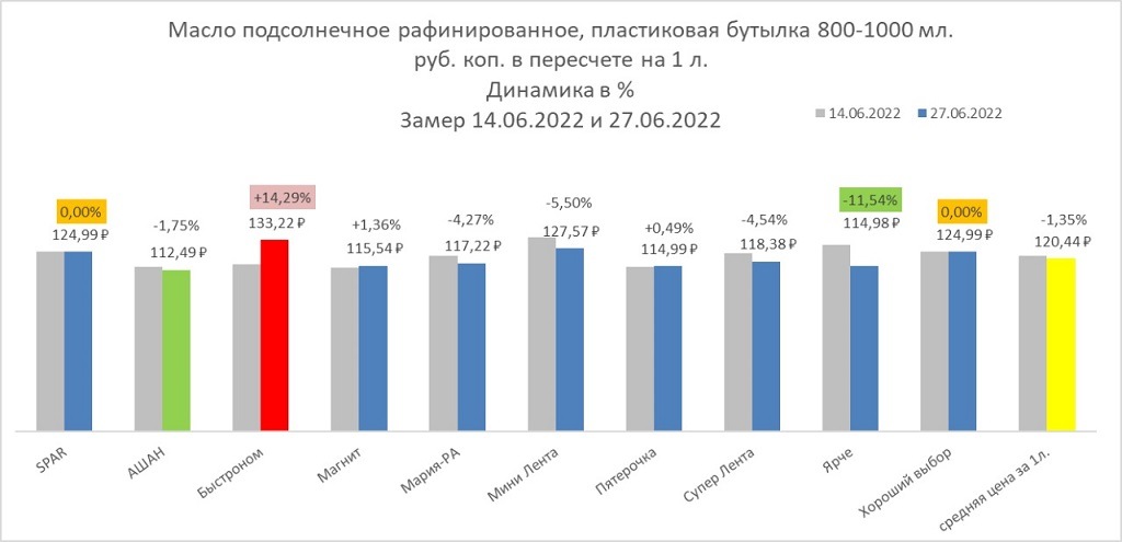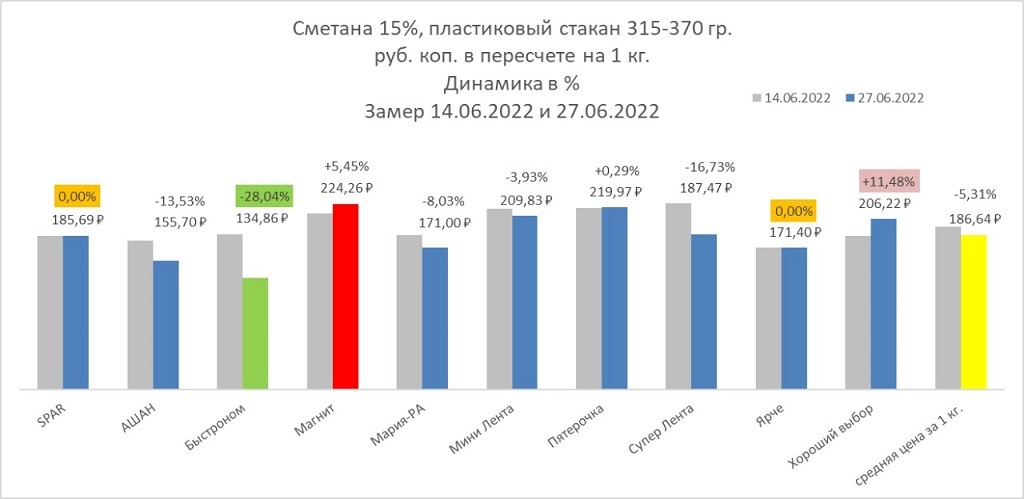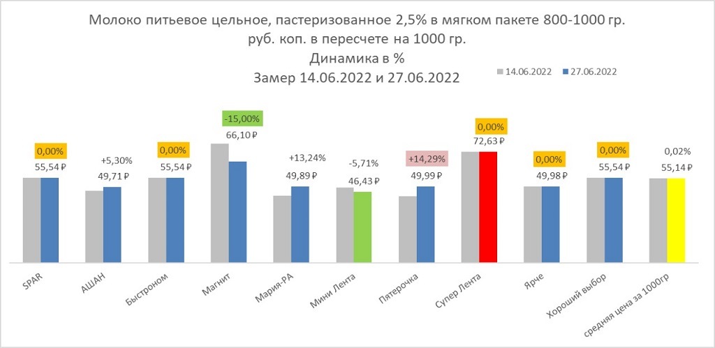 Принцип выбора товара — самая низкая стоимость. Сравнивать будем цены за 14 июня и 27 июня.