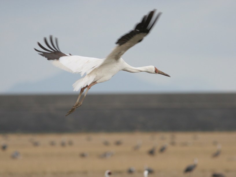 Стерх, или белый журавль (Grus leucogeranus), на данный момент не может существовать без постоянной опеки человека. Еще в конце XVIII века в дельте Волги видели стаи белых журавлей числом до 300 птиц, пролетающие из родных обских болот на зимовку в Иран и Индию. Сейчас от популяции стерхов в нижнем течении Оби осталось около 20 птиц. Зимуют они к югу от Каспийского моря в иранской провинции Мазандеран. Несколько больше — возможно, до трех тысяч — стерхов в Якутии, где они гнездятся между реками Яна и Колыма. Они летают на зимовку в Китай.