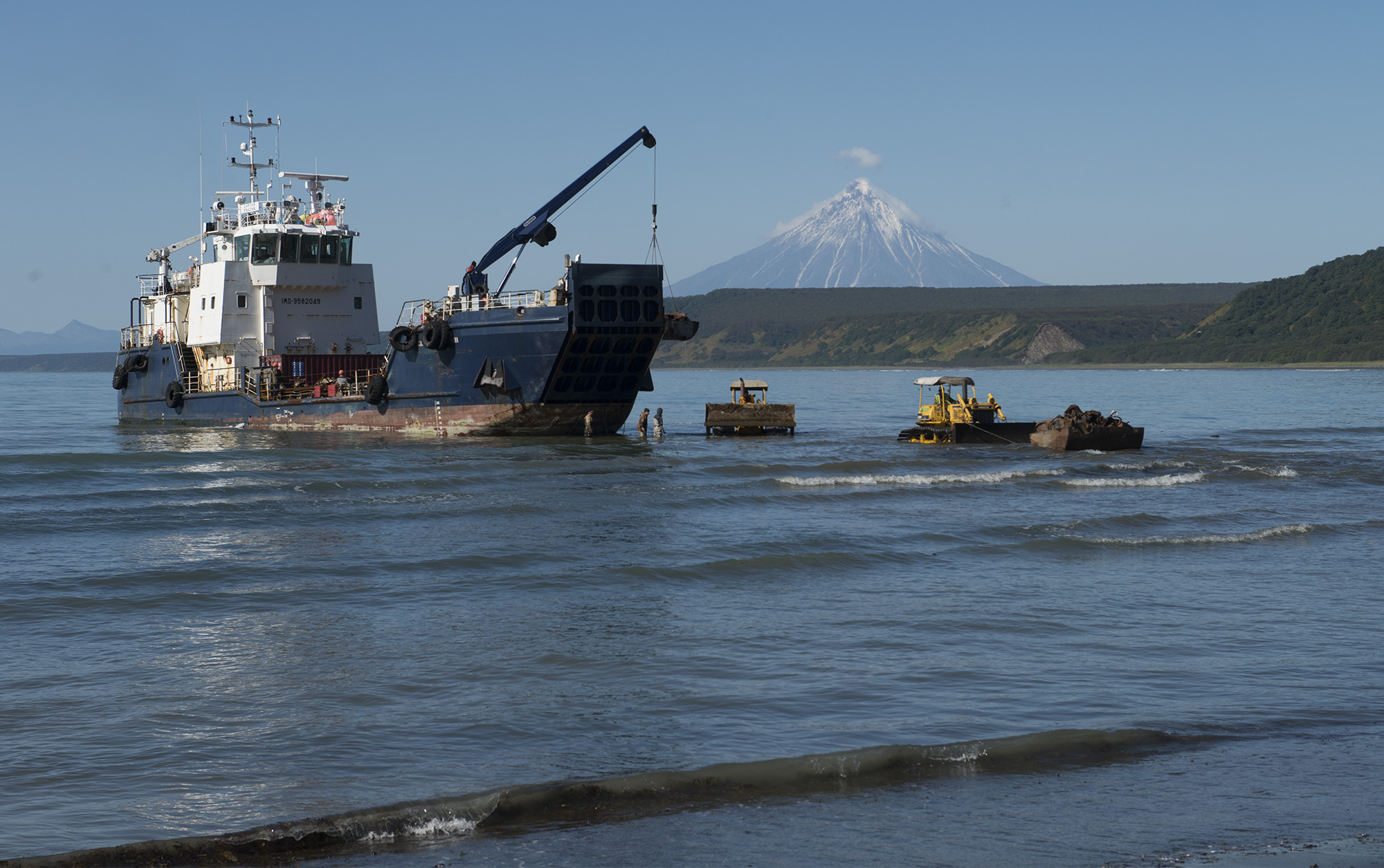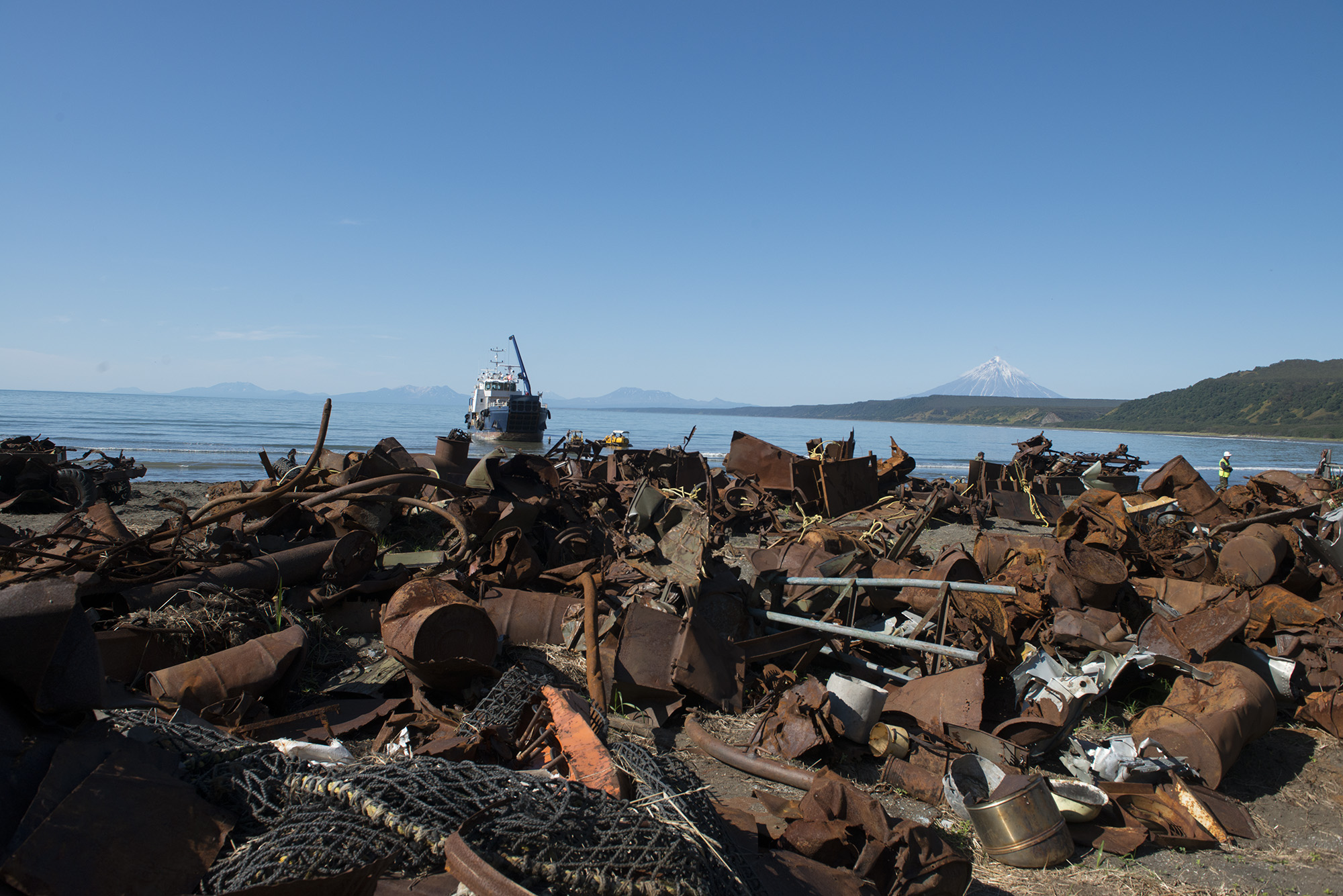 Почти семь лет назад, 15 сентября 2015 года, меня попросили слетать с туристами в заброшенное поселение Кроноки в Кроноцком заповеднике, чтобы понаблюдать за серыми китами. Тогда я и думать не мог, что нахожусь в начале событий, которые драматичным образом скажутся на судьбах близких мне людей... С высоты вертолета были видны кучи железного хлама и морское судно на мелководье, в которое этот хлам грузили. С приморской террасы к побережью трактора таскали остатки ржавой техники и конструкций, рабочие прессовали пустые бочки в компактные блинчики. Почти весь день, что мы провели рядом с Кроноками, кипели работы. Конечно, я слышал о проекте по очистке заповедника, но не представлял, насколько работы серьезны и масштабны. Не знаю для чего (ведь это не совсем моя тема), тогда сделал несколько вот этих снимков. А вот и пригодились.