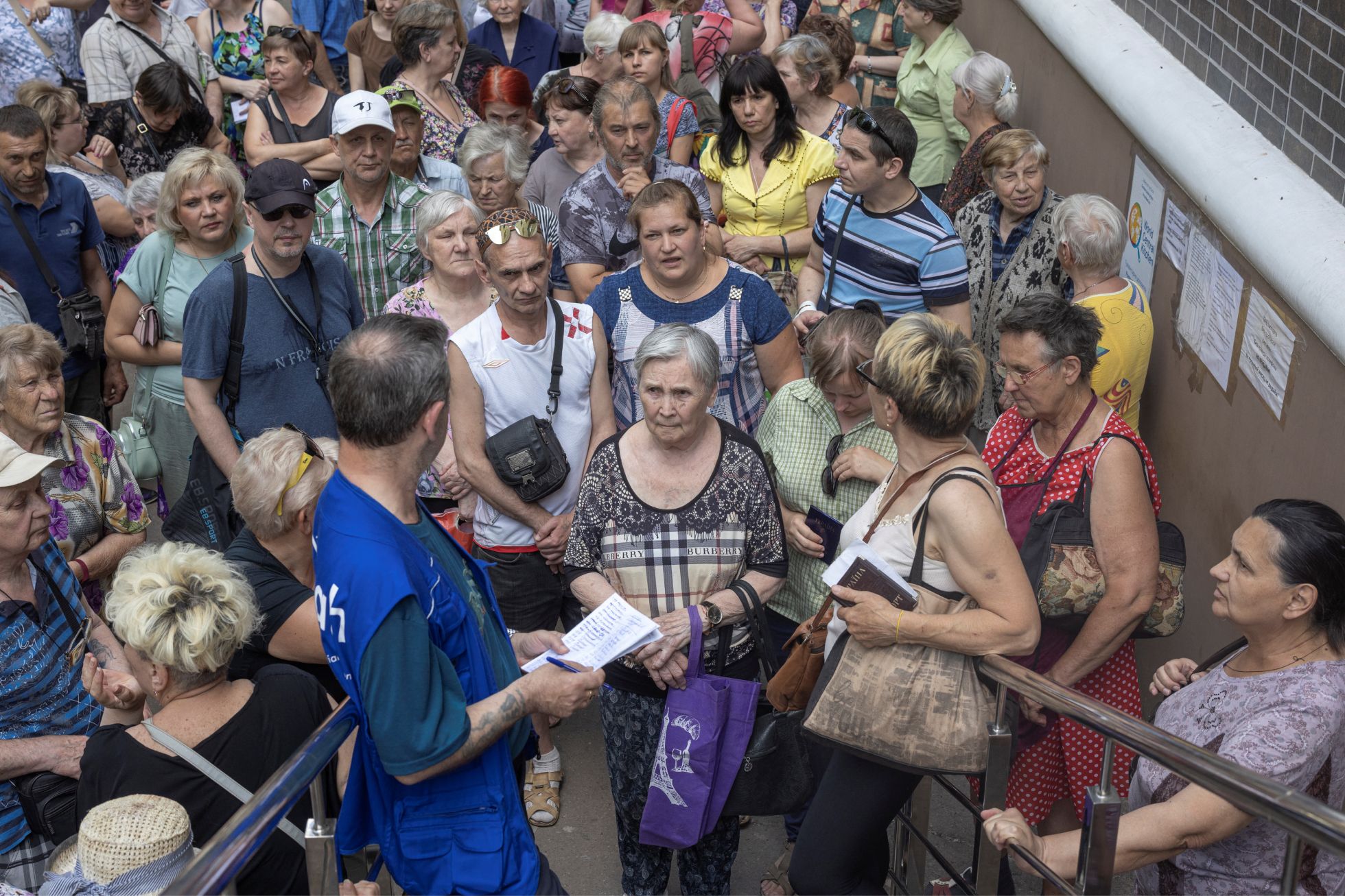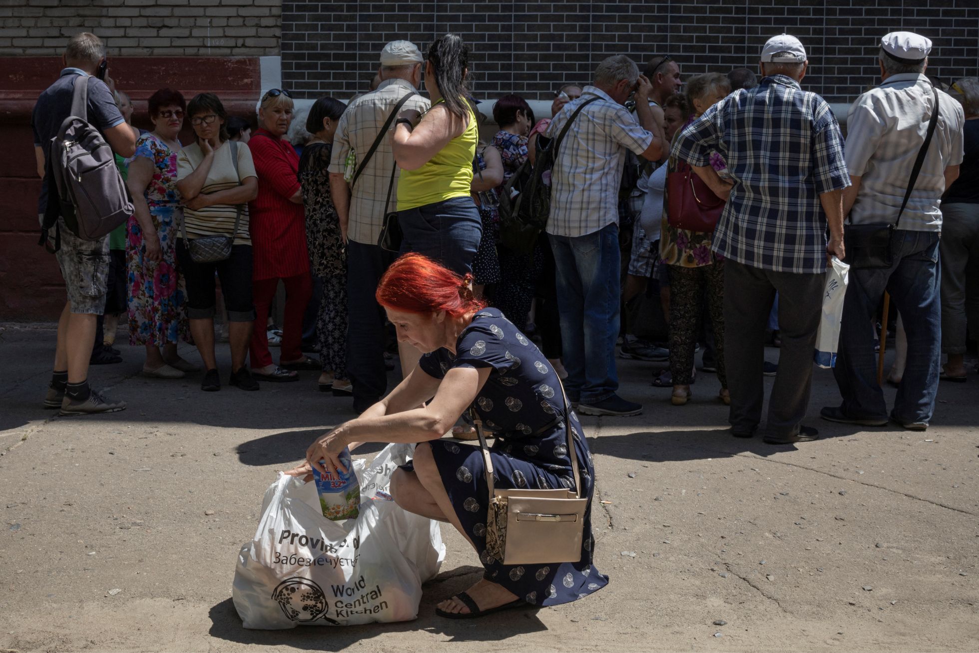 Люди в очереди за гуманитарной помощью.