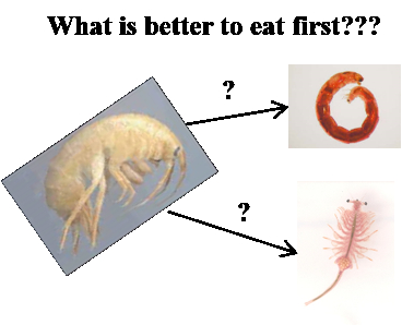 Авторы работы исследовали то, как ведет себя хищный рачок гаммарус (Gammarus) в присутствии двух типов пищи — жаброногого рачка артемии и личинки комара-звонца (мотыля). Для этого они запускали хищника в сосуд с водой и субстратом на дне или без него, а затем добавляли двух жертв: либо двух рачков, либо двух личинок, либо рачка и личинку. Ученые анализировали не только поведение животных, но и оценивали, как быстро гаммарус съест предложенную еду, а при наличии выбора — кто станет первым блюдом.
