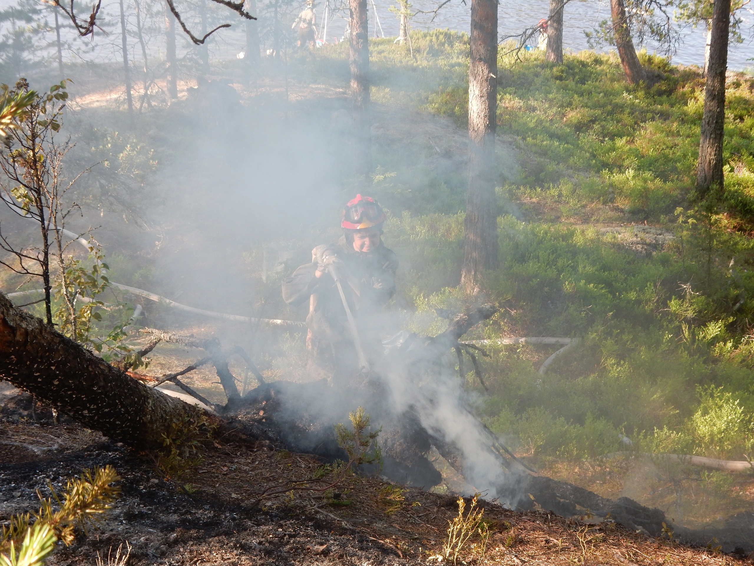 На месте мы обнаружили туристов, которые были в синтетике и тушили из ведер кромку, — я отдала визитки, поблагодарила за вызов. Ребята сообщили, что чудом вышло, что у них оказался наш контактный номер телефона, — в шхерах они увидели и сфотографировали наш аншлаг. Значит, это работает — пригодилась информация!