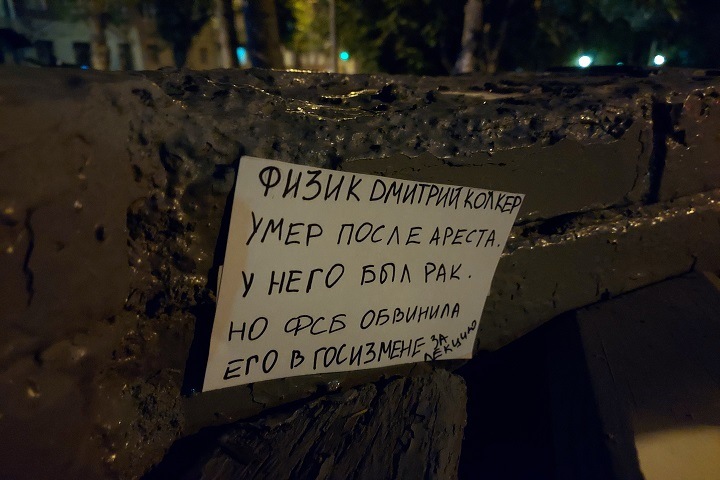 Доктор наук, завлабораторией квантовых оптических технологий Новосибирского государственного университета Дмитрий Колкер погиб после того, как его сотрудники ФСБ задержали его прямо в больнице, несмотря на последнюю стадию рака, а суд отправил его в московское СИЗО. Через два дня после ареста он умер.