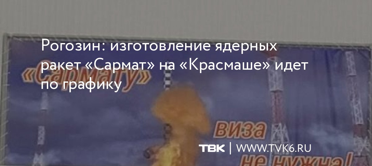Как Рогозин написал в своем telegram‑канале, 5 июля он посетил «Красмаш» и проверил ход изготовления ядерной ракеты «Сармат» – как для продолжения летных испытаний, так и для начала серийных поставок.