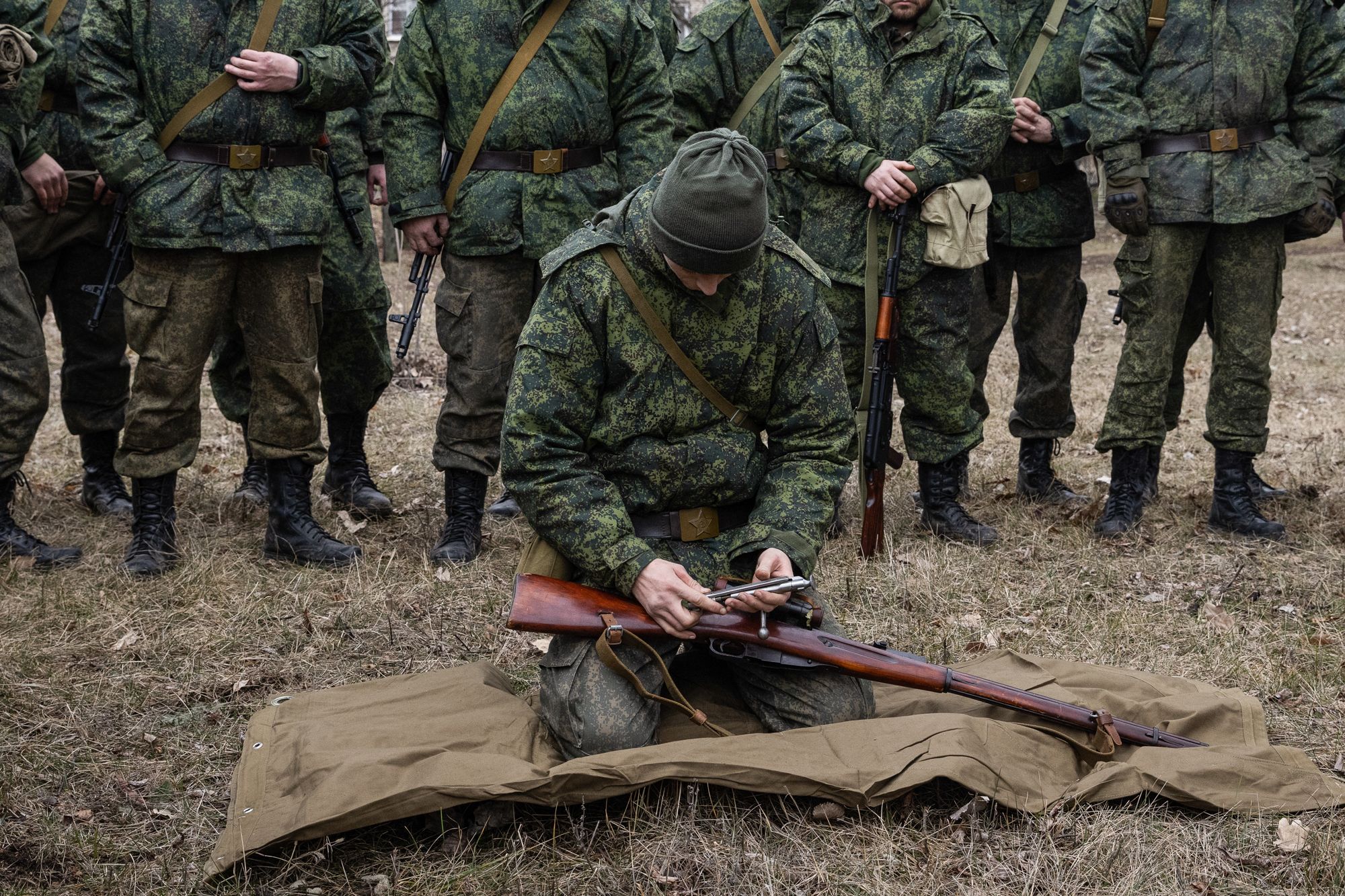 Никакой медкомиссии, никакой подготовки. Нормой для мобилизованных стало получить форму, далеко не всегда подходящую по размеру, автомат, а иногда и «мосинку», каску образца [одна тысяча девятьсот] пятьдесят третьего года, один магазин и десять патронов.