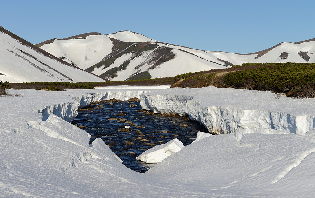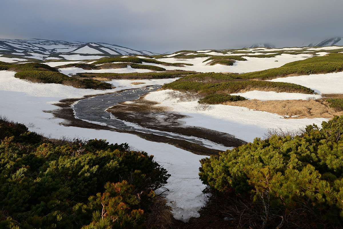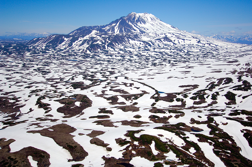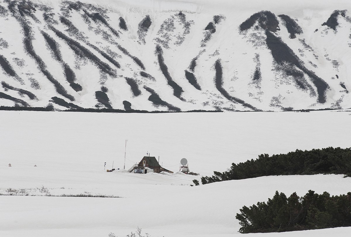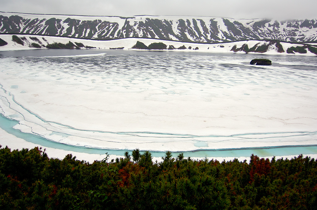 Объяснение простое: за зиму на вулканических плато полуострова выпадает столько снега, что порой он не успевает растаять за лето: образуются снежники, порой многолетние.