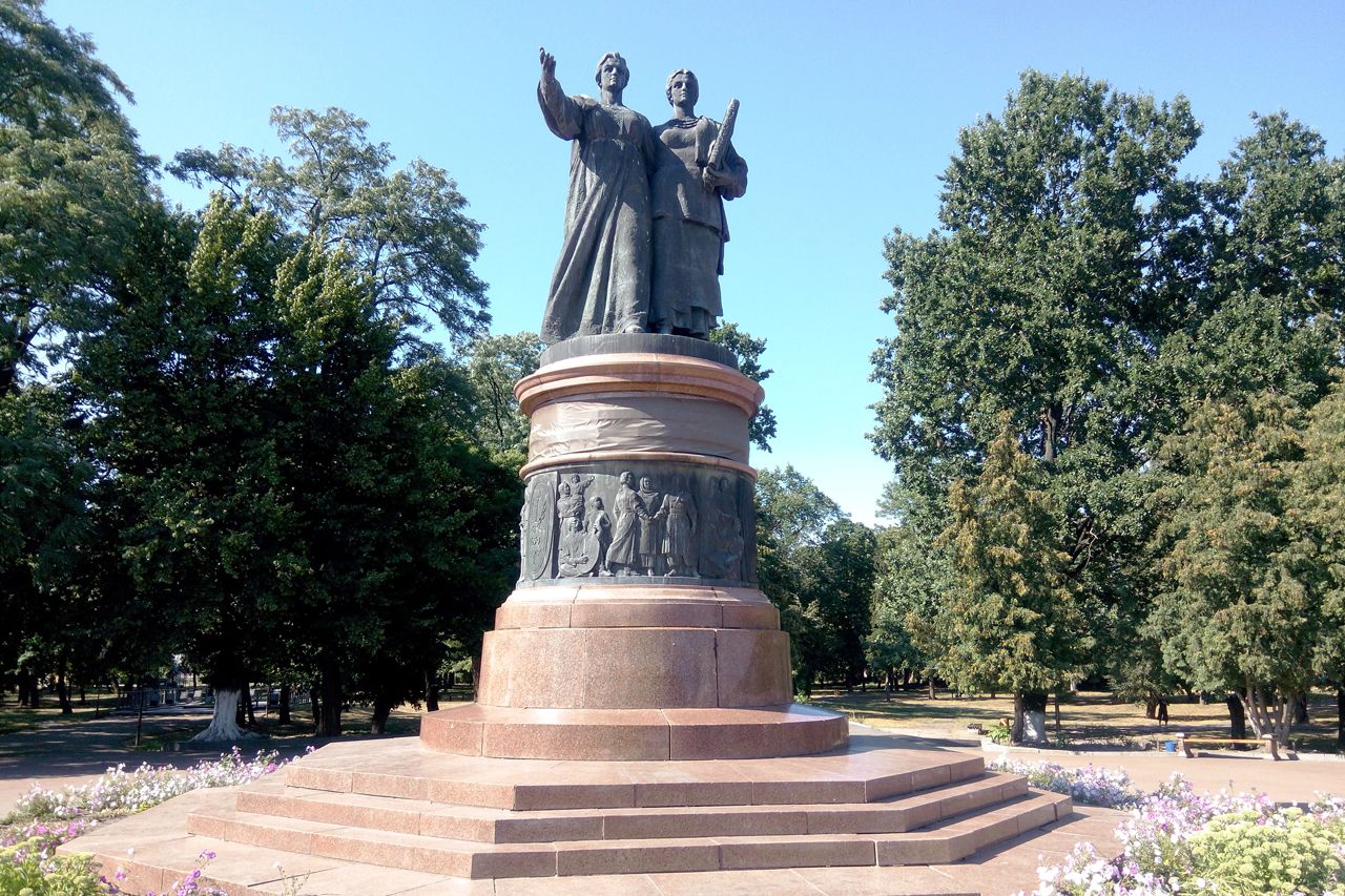 Монумент 300-летию воссоединения Украины с Россией изображает украинку, которая держит в руках Конституцию, и русскую, которая указывает вперед. Еще до российского вторжения в Украину в Переяславе шли разговоры о демонтаже памятника.
