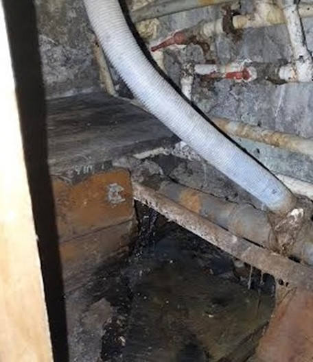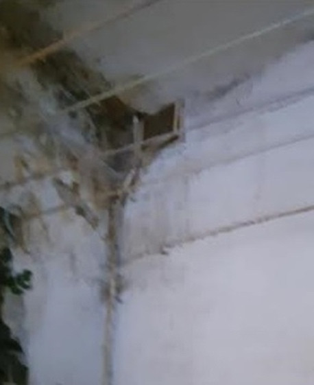 Состояние дома сложно объяснить нормальными словами. Плесень, протечки канализации, выпавшие и здесь же повисшие на фасаде доски, искрящая электропроводка. Потолок, севший на трубу водоснабжения...