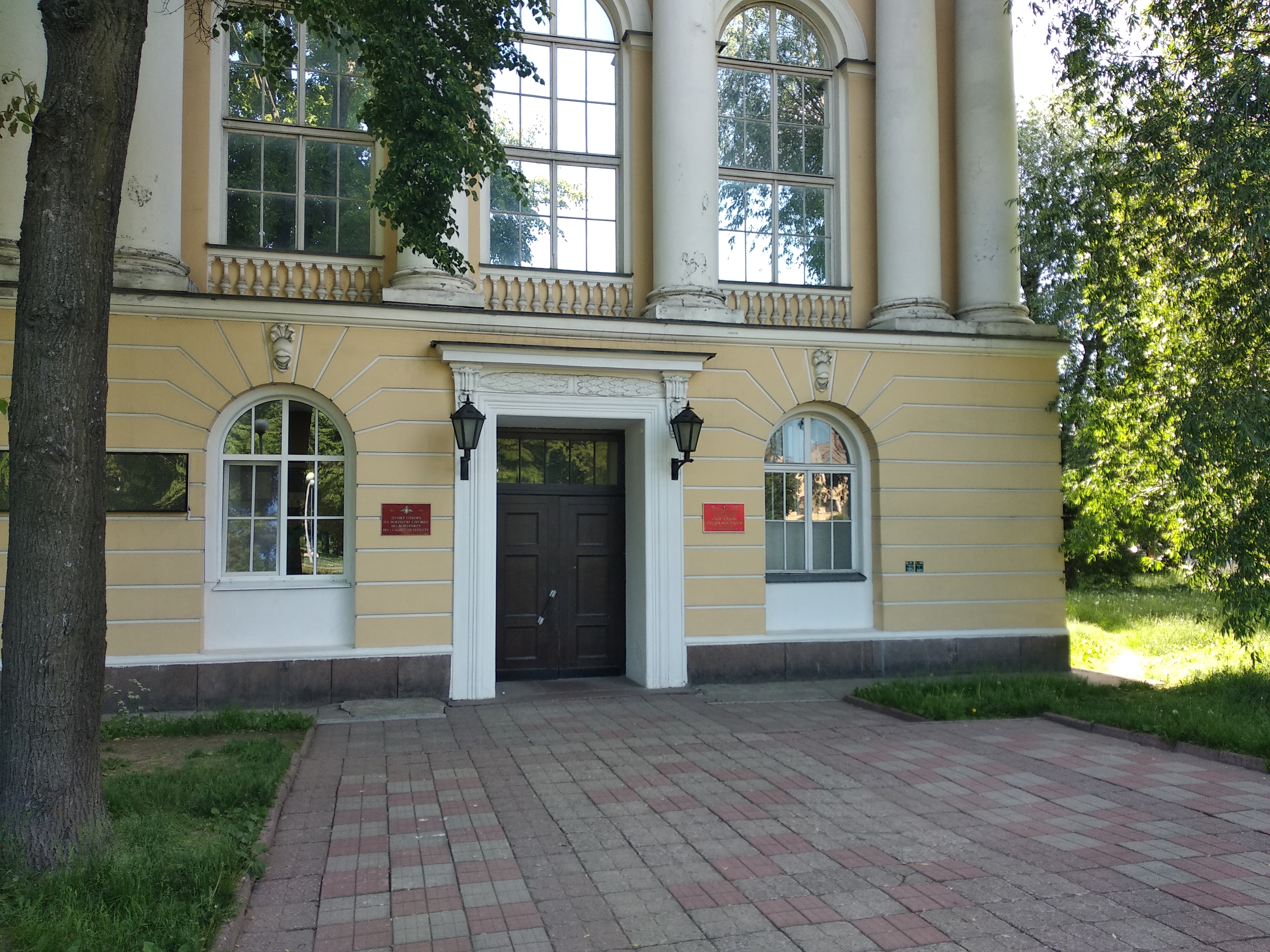 Слева от двери, что смотрит на Пионерскую площадь, табличка "Пункт отбора на военную службу по контракту по городу Санкт-Петербургу", справа другая – "Ансамбль песни и пляски". Оттуда тоже периодически выходят люди.