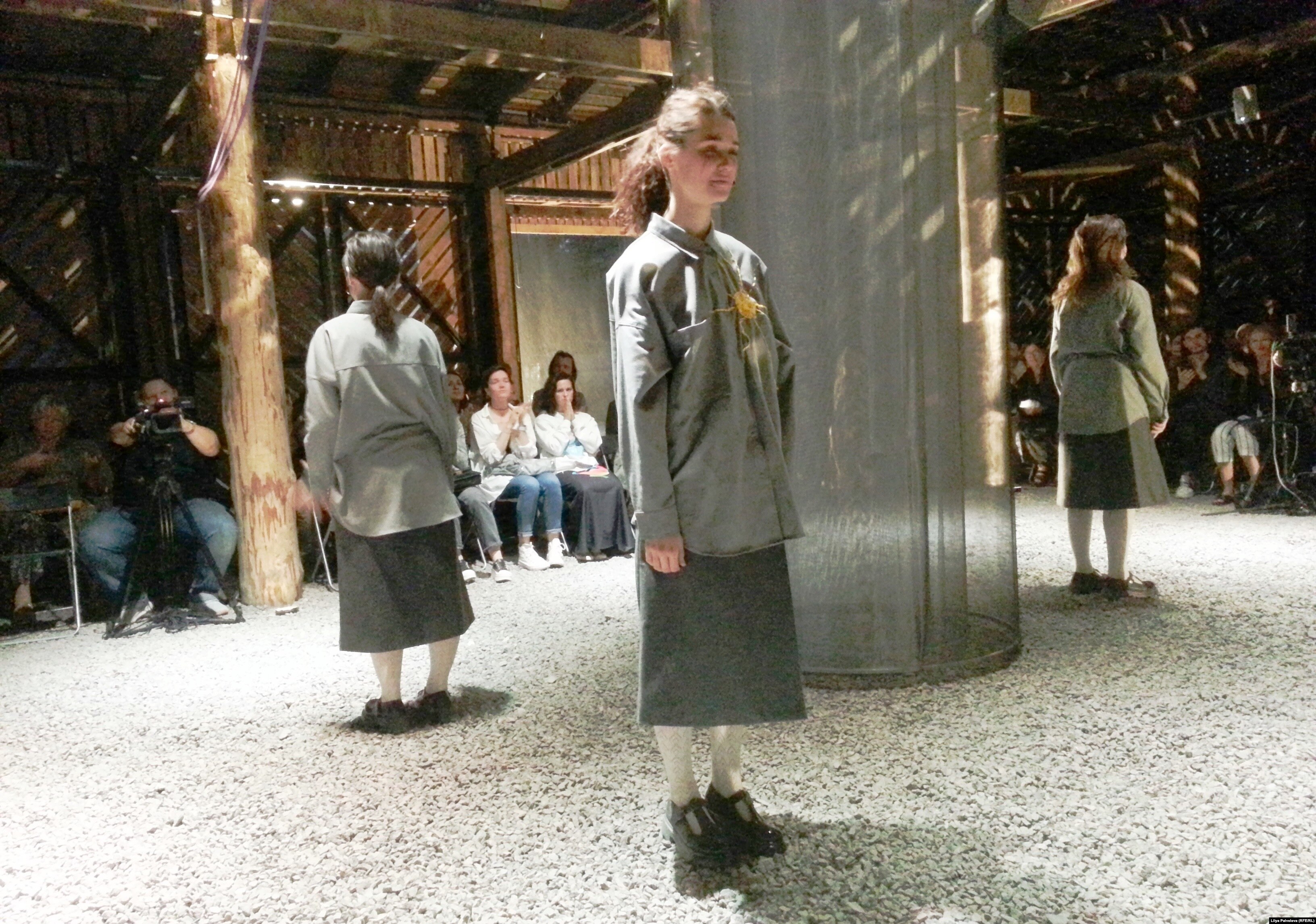 – Изначально была идея, что должен быть какой-то ансамбль дочерей. Чтобы возникла метафора о тысяче таких дочерей, которые ищут своего отца. То есть я просто искал какой-то минимум голосов, внутри которых я смогу это музыкально выразить. А потом, когда мы уже начали работать с павильоном, то логично стало работать с его тремя сторонами (четвертая – для музыкантов). Мы придумали рассадить зрителей вокруг сшитого видеоцилиндра для круговой проекции. Так что сами условия подсказывали такое решение, что должны остаться три исполнительницы, которые со всем этим взаимодействуют.