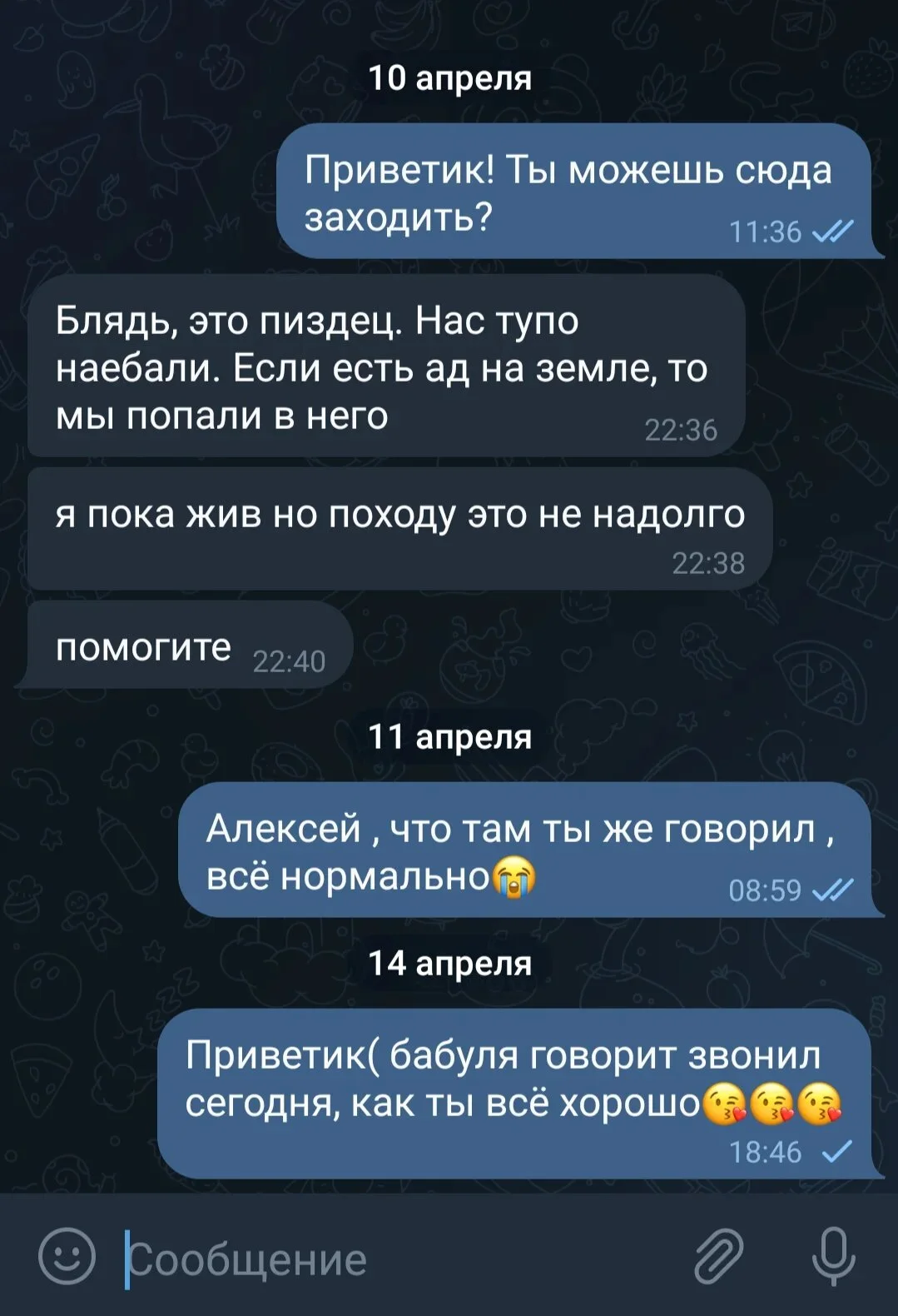 Danila: They said, my dear ones, today I am going into battle, I am very scared, I hope everything will be fine, he said he loves all of you, there was your name there, also his girlfriend Zhenya I think, he said he loves you all very much