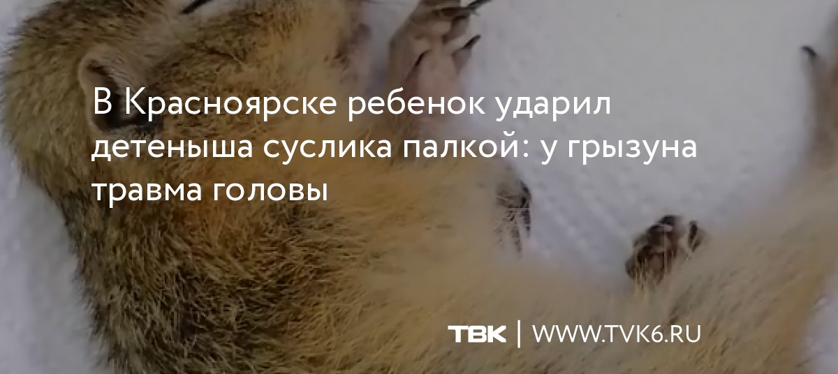 О травме малыша-суслика рассказали в группе ветеринарной клиники «Лимпопо» во «ВКонтакте». Там выложили пост, в котором сообщили, что зверька привезли красноярцы. Они видели, как ребенок ударил палкой животное.