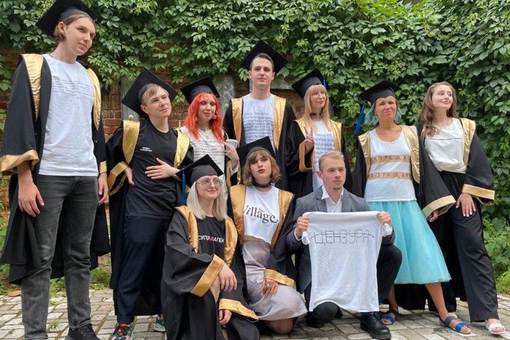 11:17 Выпускники программы «журналистика» Высшей школы экономики пришли на вручение дипломов в футболках в поддержку СМИ, передает РБК и публикует фото студентов.
