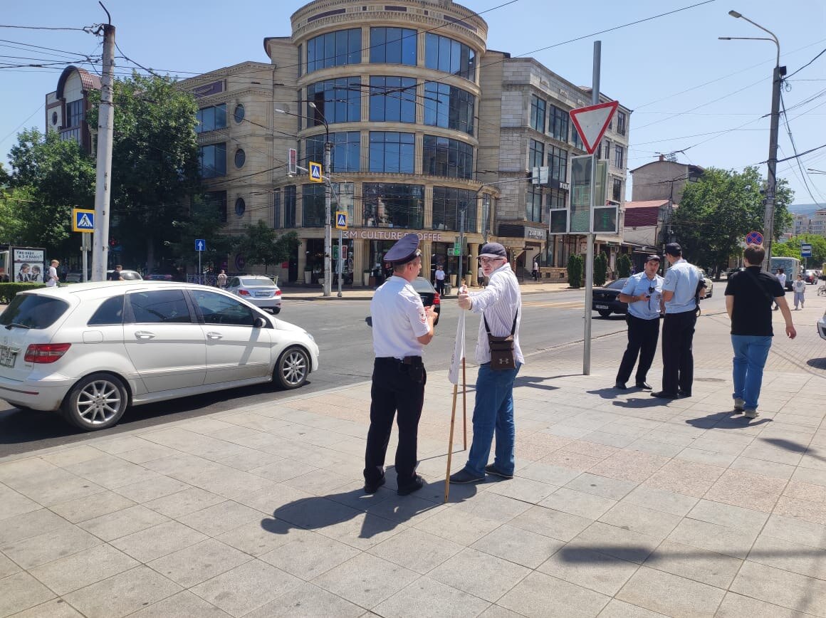 - В мае от участника пикета против уголовного преследования Гаджиева потребовали пройти в отдел полиции. Полицейские обратились к учредителю газеты "Черновик" Магди Камалову, который вышел на акцию с плакатом "Свободу журналистике". Силовики обосновали свое требование тем, что Камалов "похож на человека, объявленного в розыск". Другие участники серии одиночных пикетов также последовали в Ленинский отдел полиции города.