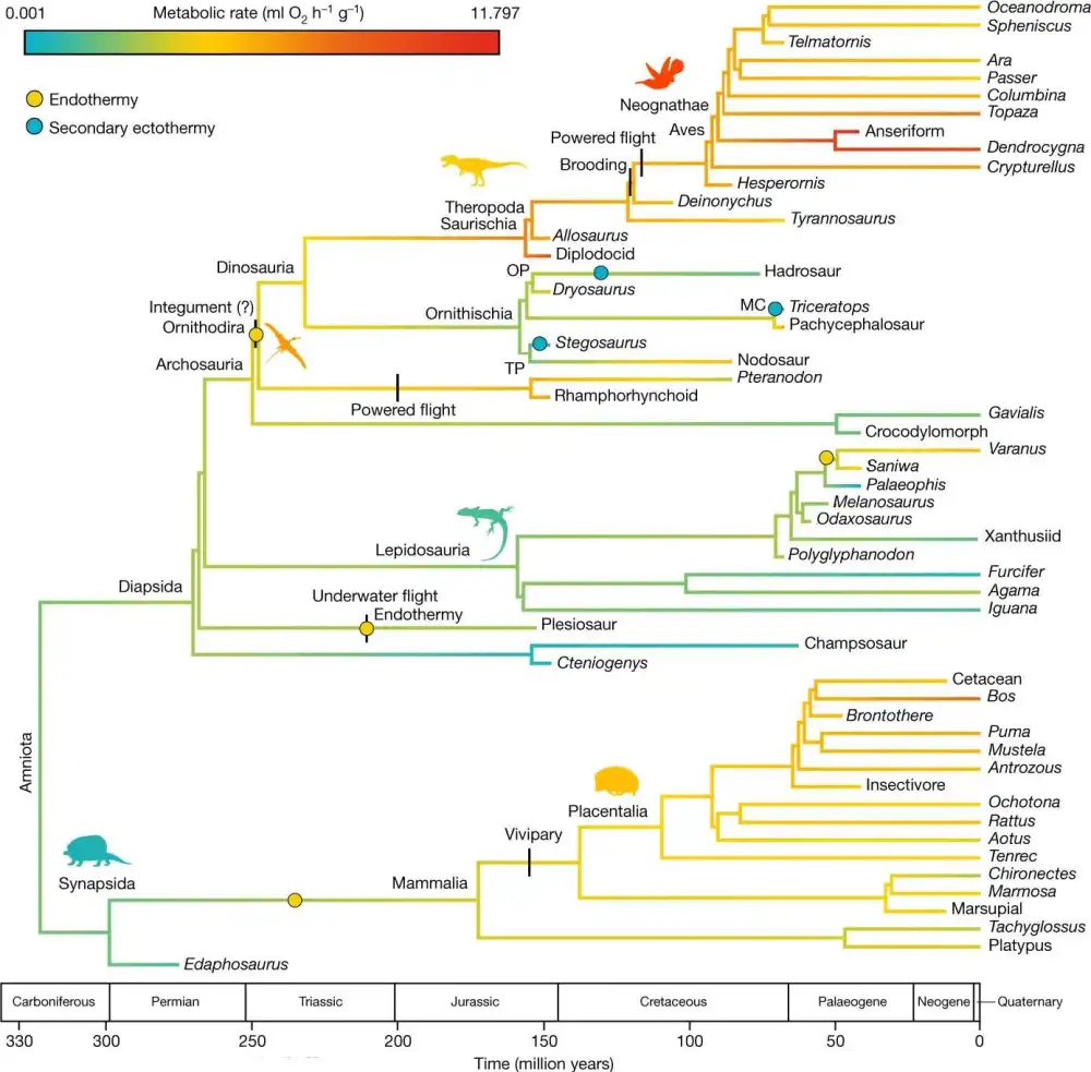 Полагаю, некоторые животные, определенные в исследовании как теплокровные, могли иметь лишь уровень метаболизма близкий к тому, который мы наблюдаем у современных варанов.