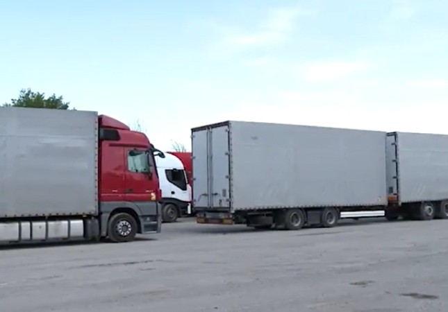 Очередь из фур в Калининградской области. Кадр видео "Известий"