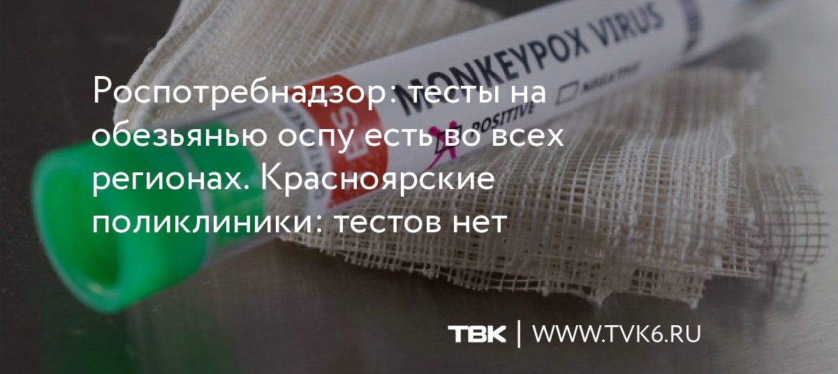 Роспотребнадзор: тесты на обезьянью оспу есть во всех регионах. Красноярские поликлиники: тестов нет