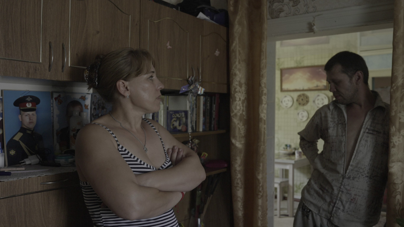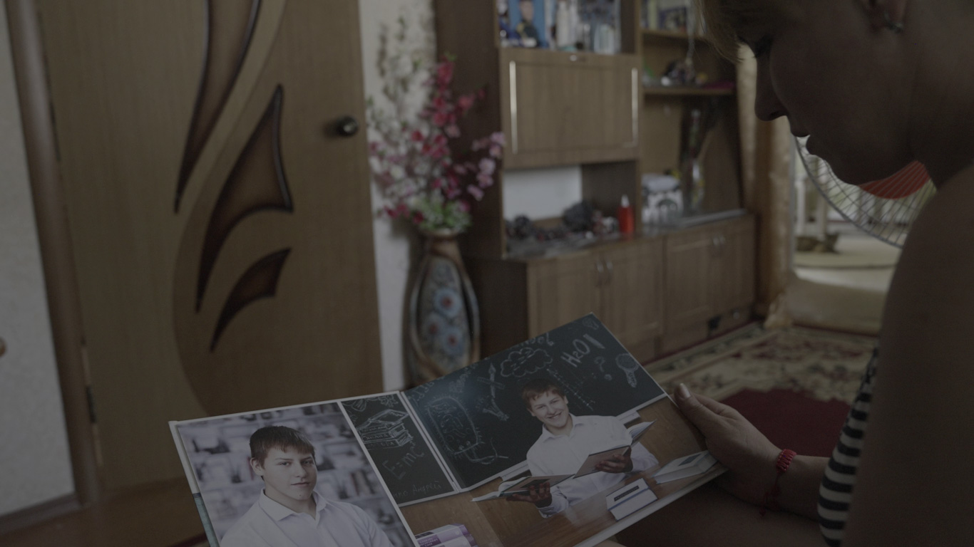 Русоволосая женщина в тельняшке курит в форточку на тесной кухне. Ей слегка за сорок. Она сутулится — сказались годы тяжелой работы и месяцы переживаний. Снаружи жарко и солнечно, солнце беспощадно бьет в окна. Женщина опускает жалюзи, включает вентилятор. Дом погружается в полумрак. Узкие лучи слабо освещают на полке игрушечных солдатиков с бластерами и плащами. Над ними — фотография крепкого парня с крупным, волевым подбородком. Он в военной форме, с щегольским аксельбантом. Это Владислав Кривенко, старший сын хозяйки дома.