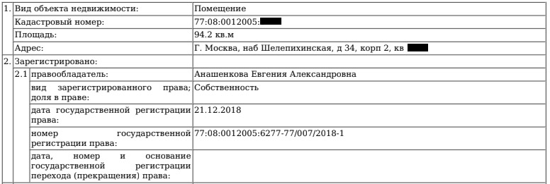 Более того, девушка, жаловавшаяся на трудности с финансированием и подрабатывавшая на не самой высокооплачиваемой должности в партаппарате, в 2018 году неожиданно приобрела 94-метровую квартиру в жилом комплексе бизнес-класса «Сердце столицы» на берегу Москвы-реки. Такая квартира с отделкой в этом комплексе стоит в районе 50 млн рублей. Но Евгения купила её даже без ипотеки.