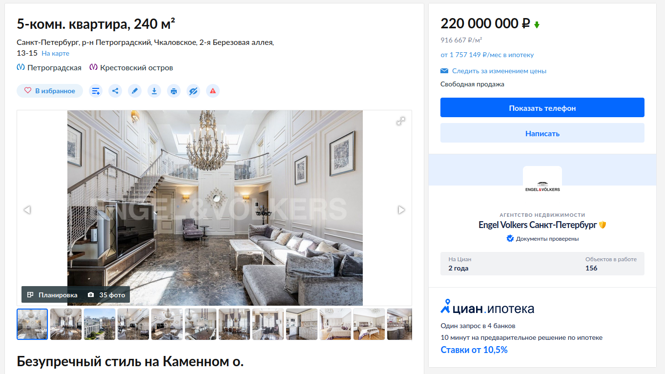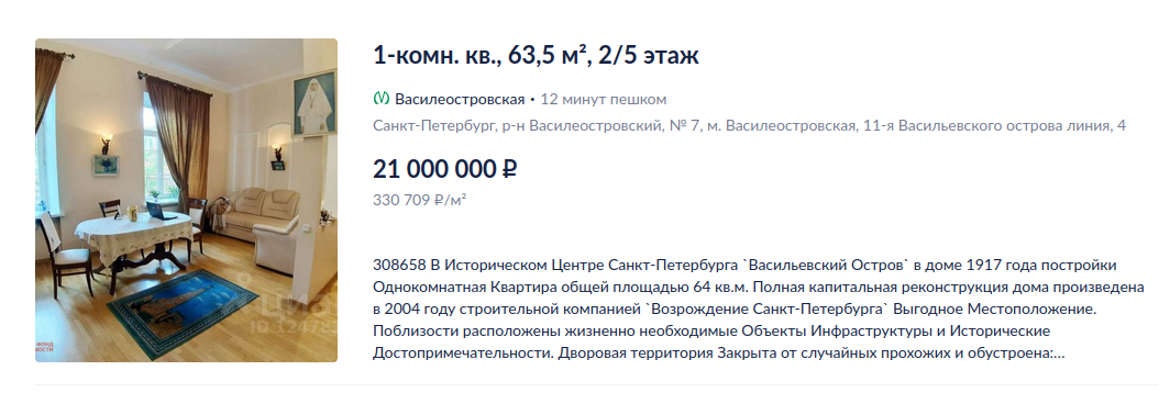 Ещё через год уже 20-летняя Ирина Миронова приобретает в собственность и 107-метровую квартиру в исторической части Васильевского острова, в доме, который только что, как раз в 2005 году, был реконструирован компанией «Возрождение Санкт-Петербурга». Квартира в два раза меньше стоит здесь около 25 млн рублей, так что стоимость квартиры Мироновой можно прикинуть примерно в 50 млн рублей.