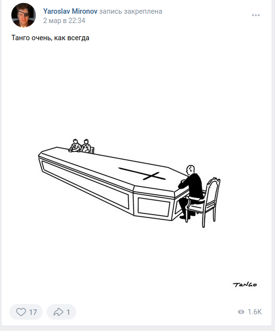 Но эти помутнения быстро прошли. Политик вспомнил о своём месте и отлично вписался в общий хор, распевая патриотические куплеты. Сейчас он призывает ликвидировать всех, кто поддерживает Владимира Зеленского, или предлагает арестовывать имущество каждого, кто покидает Россию. Комментируя отъезд Александра Невзорова, Миронов заявил: «Крысы побежали. В стране остаются патриоты, неравнодушные люди. Именно с такими мы и будем строить прекрасную Россию. Мы победим! России быть!». Самочувствие его от этого только улучшилось, а материальные возможности, судя по всему, даже и в очередной раз выросли.