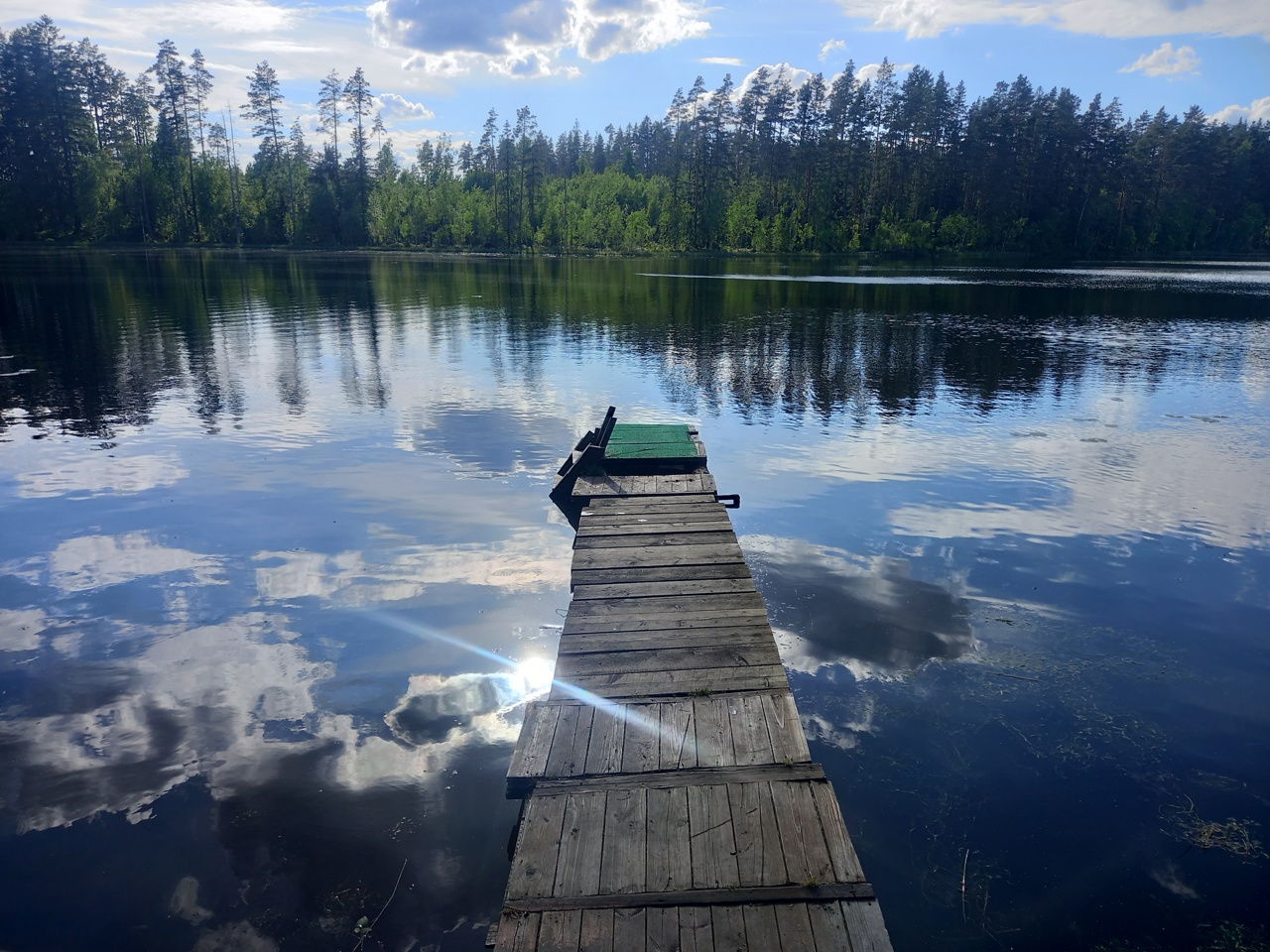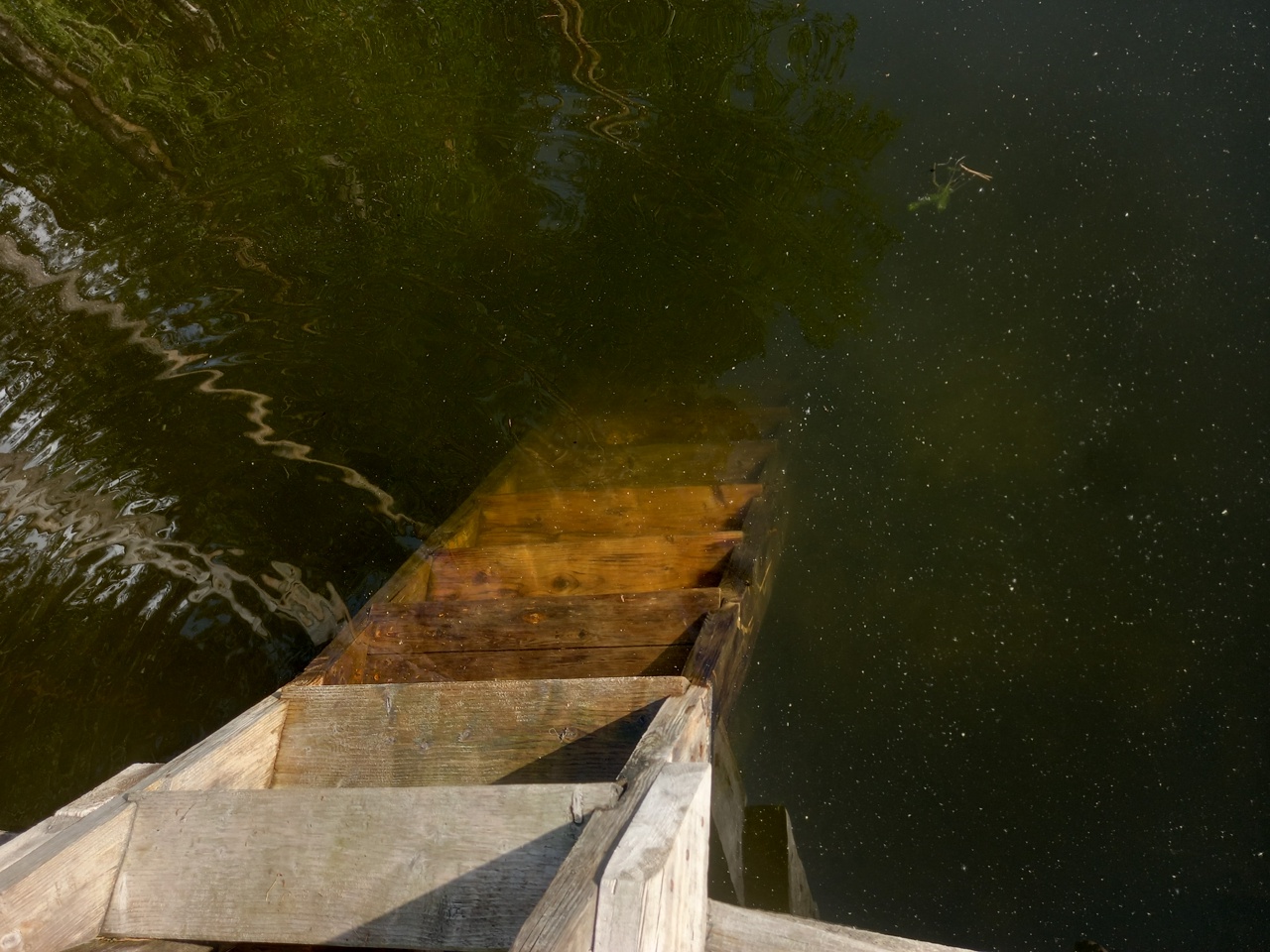 Есть и заход с берега, но на дне есть ил и листья, приятнее поэтому плыть с мостков.